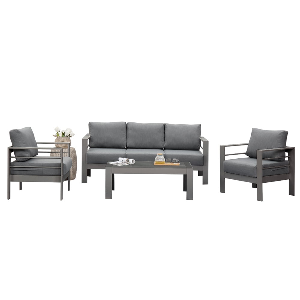 Superjoe Aluminum Outdoor Furniture Set 4 Pcs Patio Conversation Sofa Set with Coffee Table,Gray