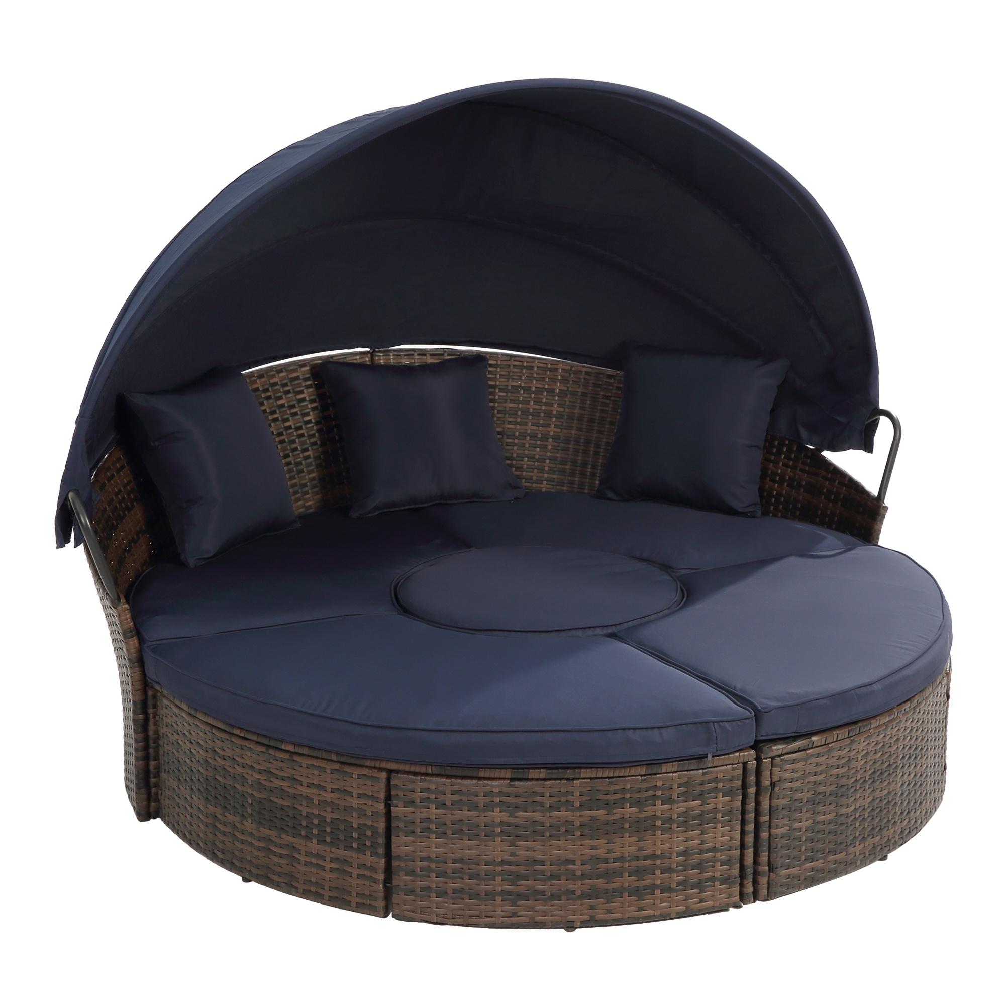 SYNGAR 6 Pieces Patio Furniture Set, Outdoor Wicker Sunbed Daybed with Canopy, Cushioned Sectional Sofa Set, Backyard Conversation Set with Coffee Table, for Poolside, Lawn, Deck, Garden, Blue, D6312
