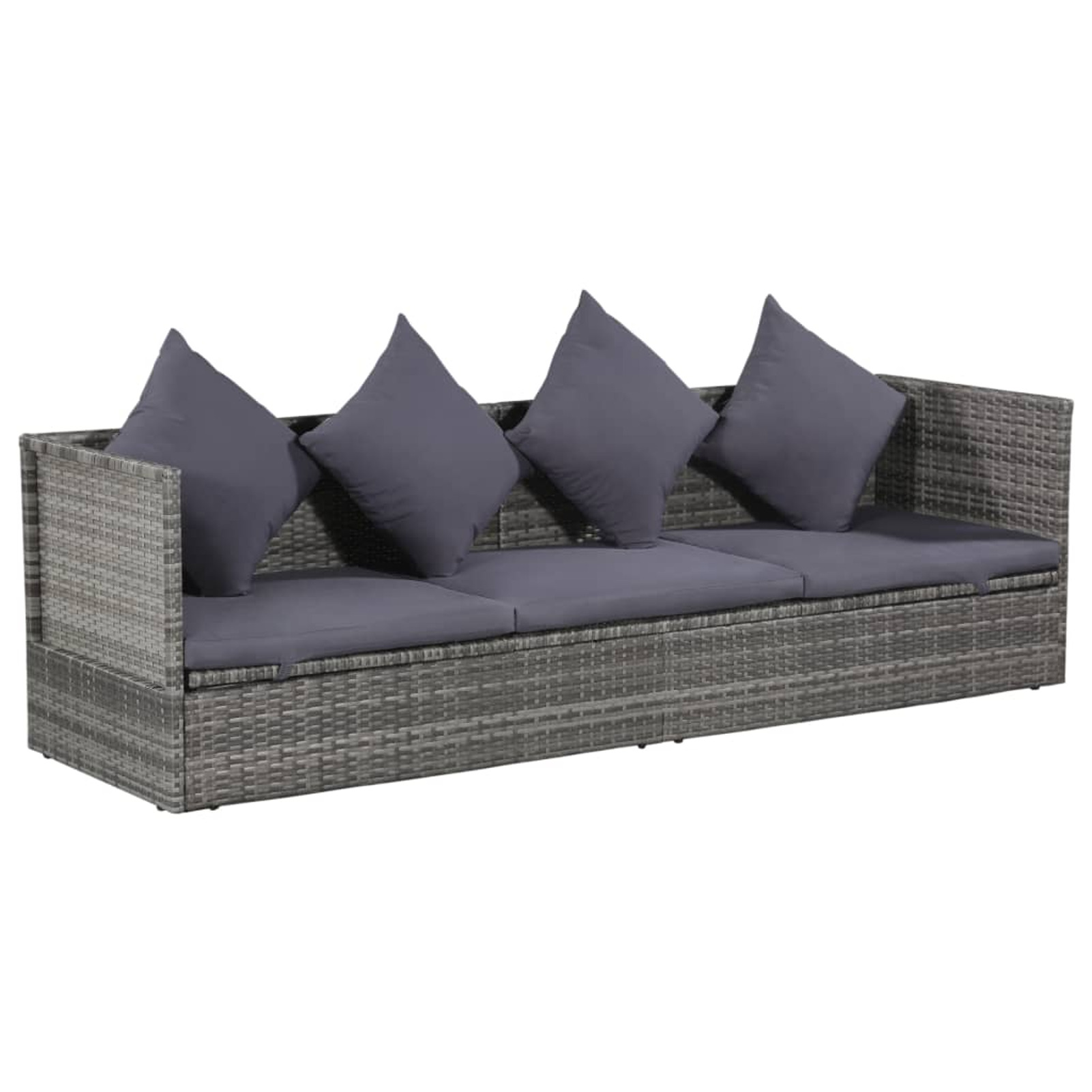 Anself Patio Sofa with Cushions and Pillow Gray Poly Rattan Both Side Adjustable Sun Bed for Garden, Poolside, Backyard, Balcony, Outdoor Furniture 78.7 x 23.6 x 22.8 Inches (L x W x H)