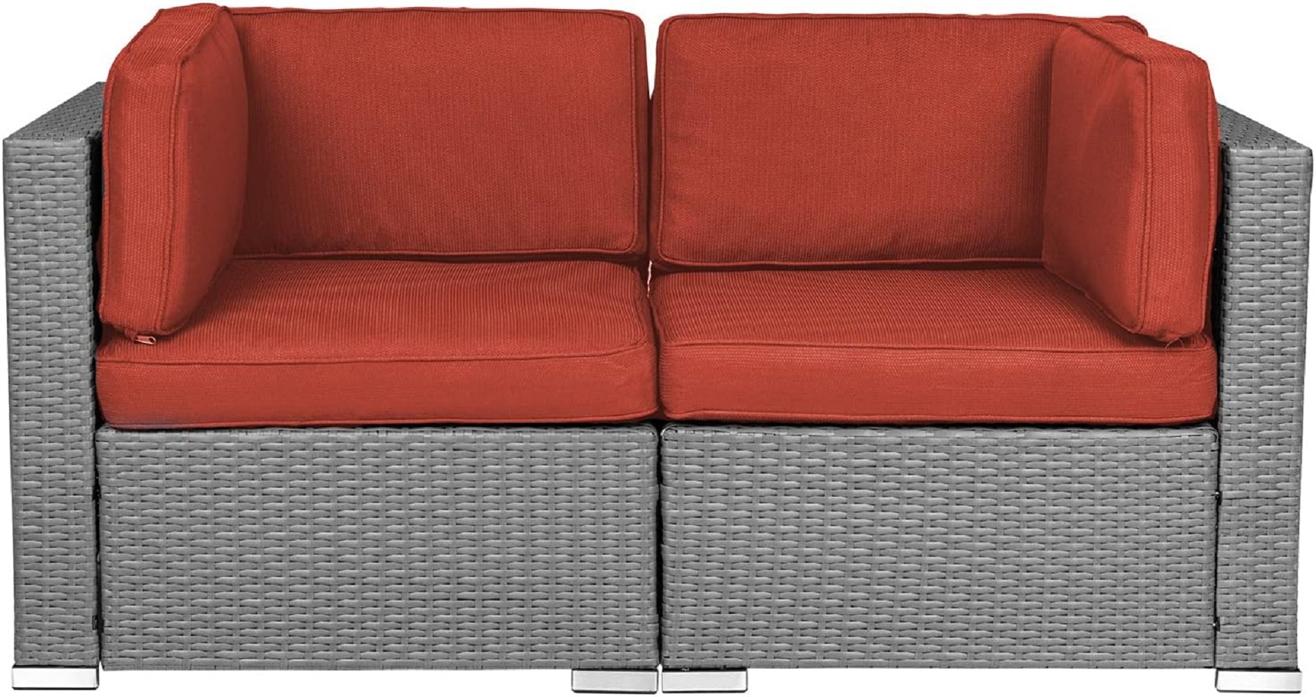SOLAURA 2-Piece Patio Loveseat Gray Wicker Corner Sofa Set with Cushions, Orange Red