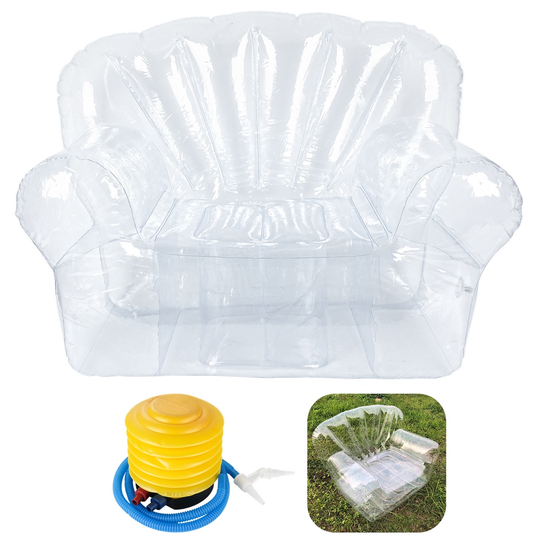 Transparent Inflatable Chair with Foot Air Pump, Clear Single Sofa Blow Up Couch for Outdoor & Indoor, Bedroom, Balcony, Swimming Pool, Lawn