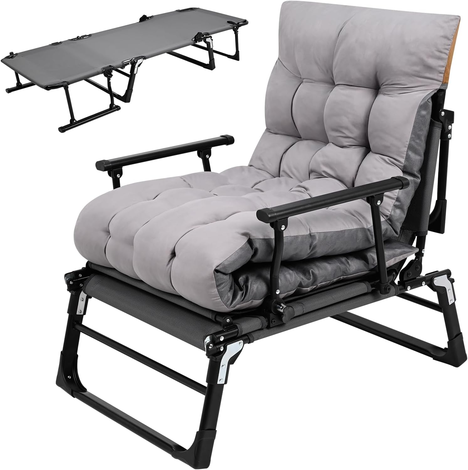 ABORON 3 in 1 Folding Bed Cot with Mattress & Pillow, Adjustable 6-Position Folding Lounge Chair, Portable Sleeping Cots Sofa Bed