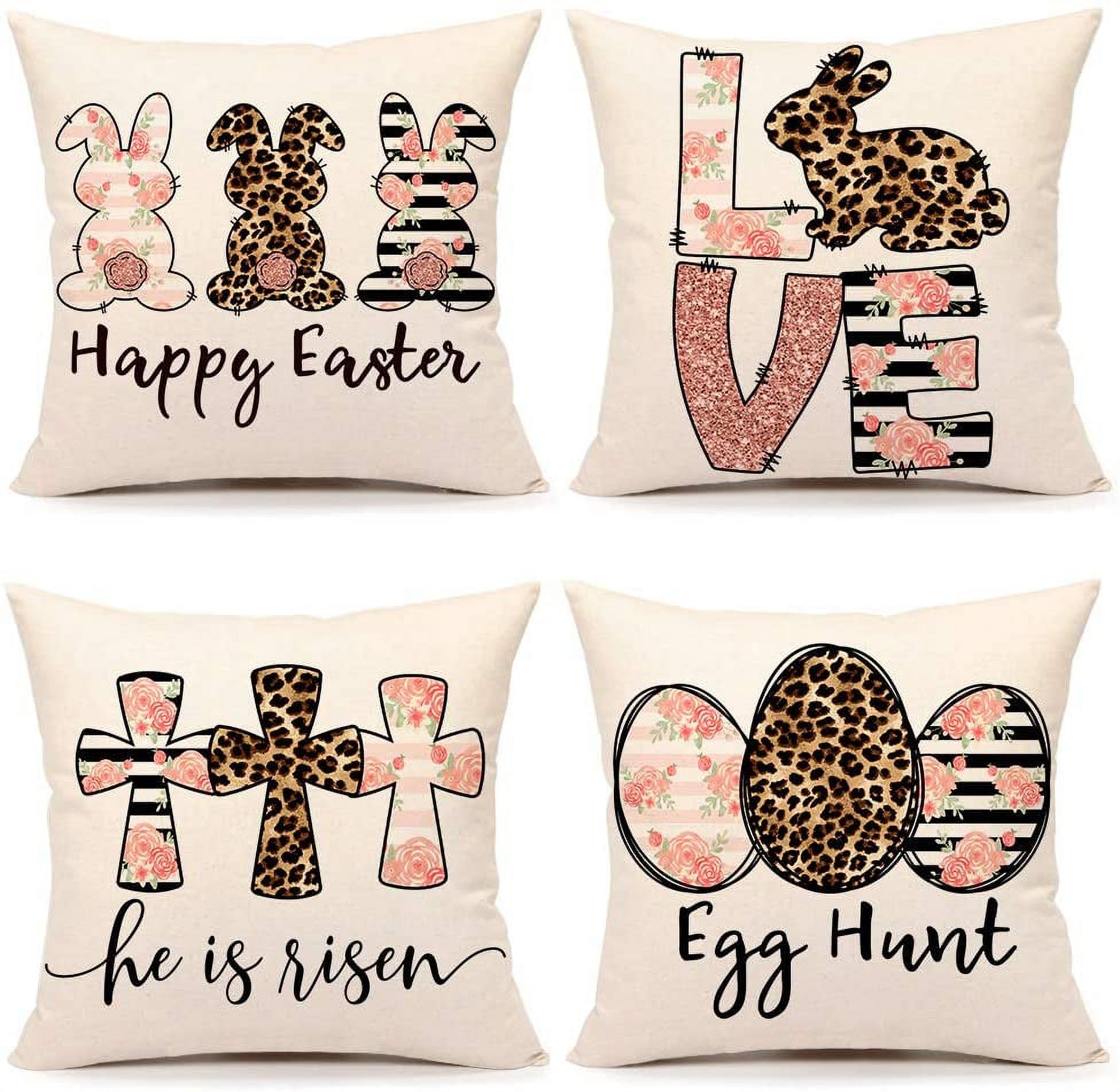 Easter Pillow Covers, Happiwiz Rabbit Bunny Decorative Throw Pillow Covers 18x18 Set of 4, Farmhouse Outdoor Pillowcase Holiday Linen Cushion Case for Couch Sofa Home Dcor