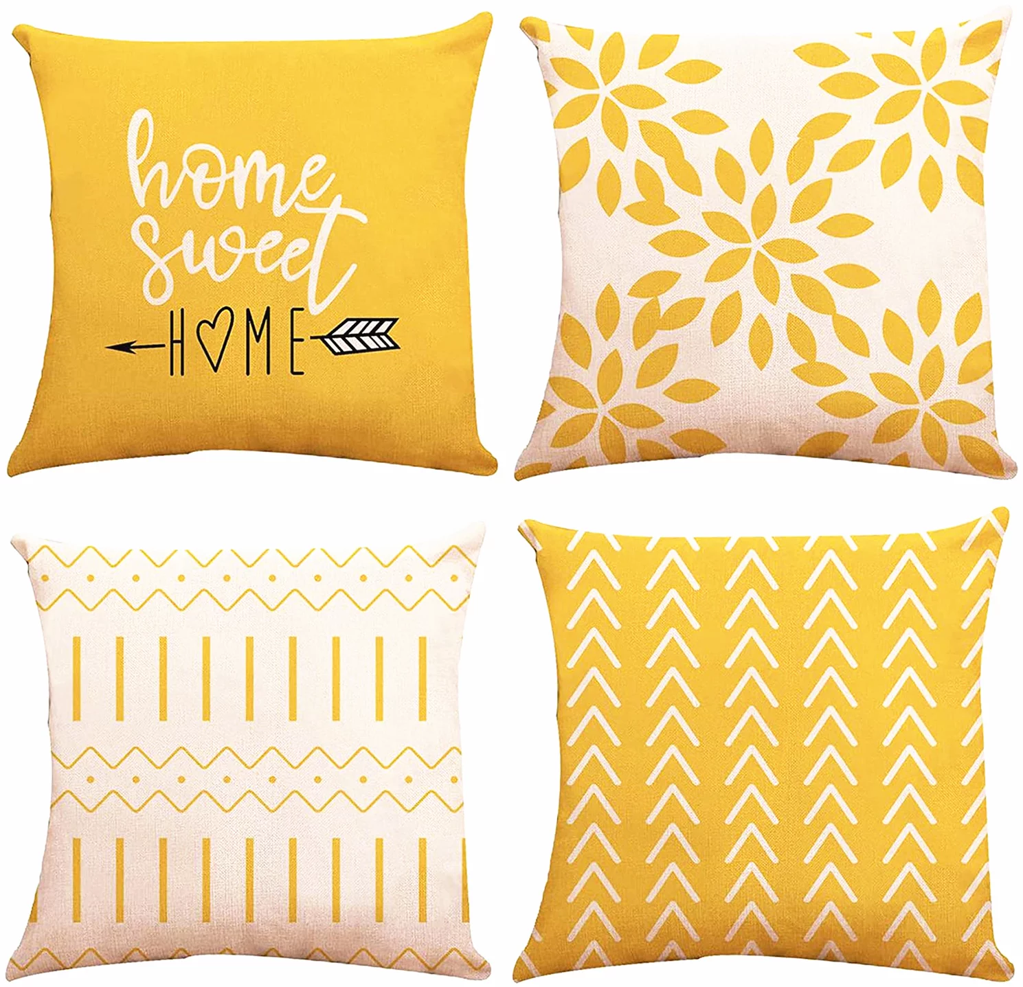 Throw Pillow Covers for Living Room Decor Couch Sofa Cushion Case Outdoor Yellow Pillow Case 18"x 18" Set of 4