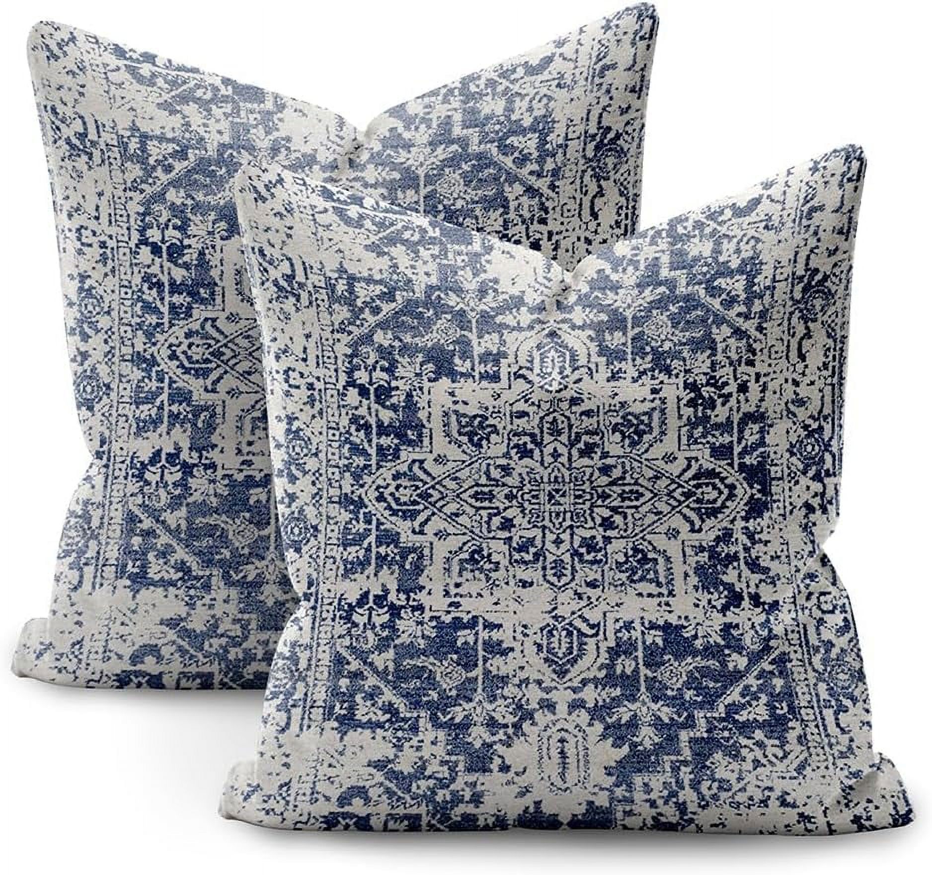 Boho Pillow Covers 18x18 Set of 2,Blue Throw Pillow Covers Outdoor Decorative Linen Pillow Covers for Couch Bed Sofa Cushion Boho Pillowcases