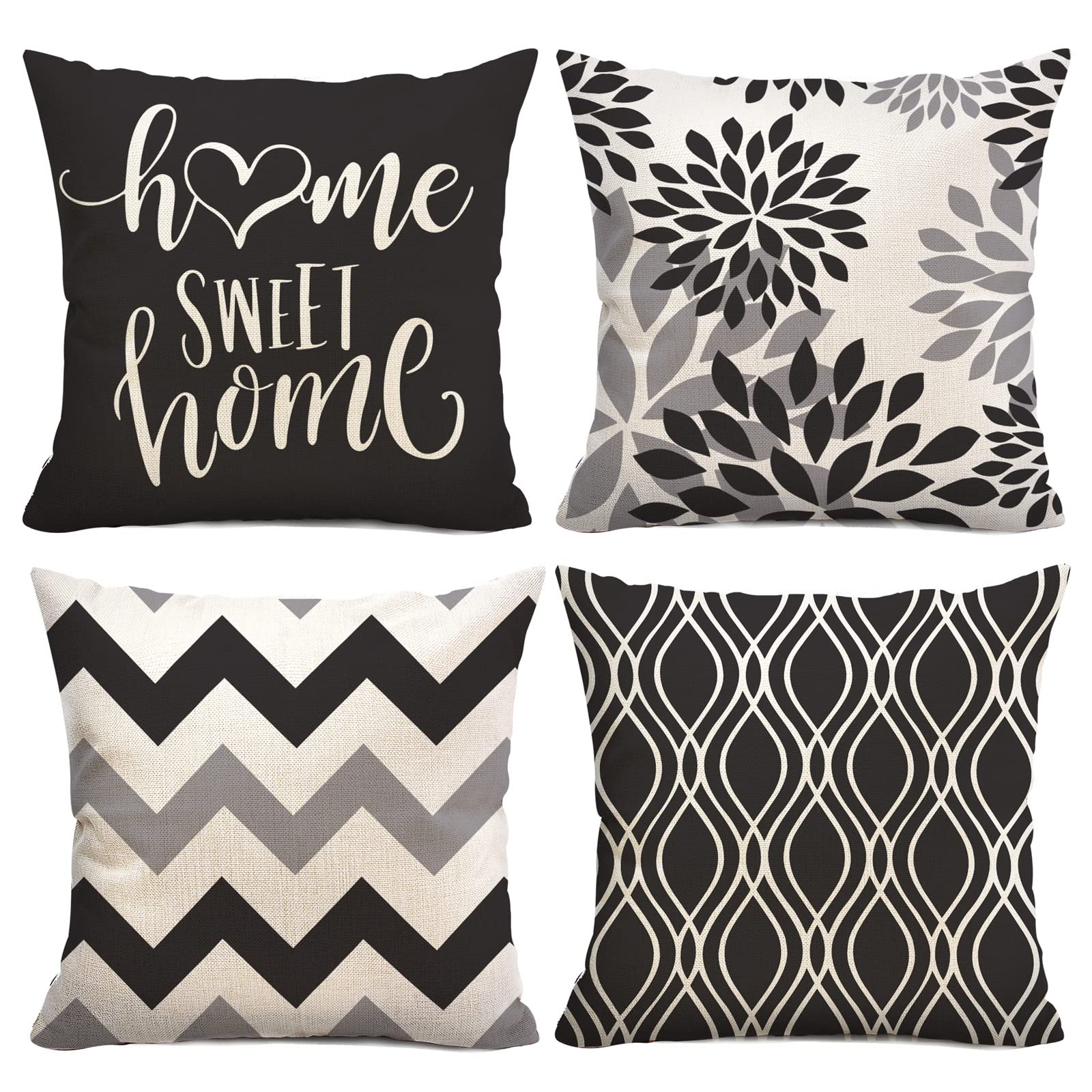 Husfou Linen Pillow Covers Geometric Decorative Square Pillowcase Throw Cushion Case for Home Sofa Bedroom Car, 18x18 inch