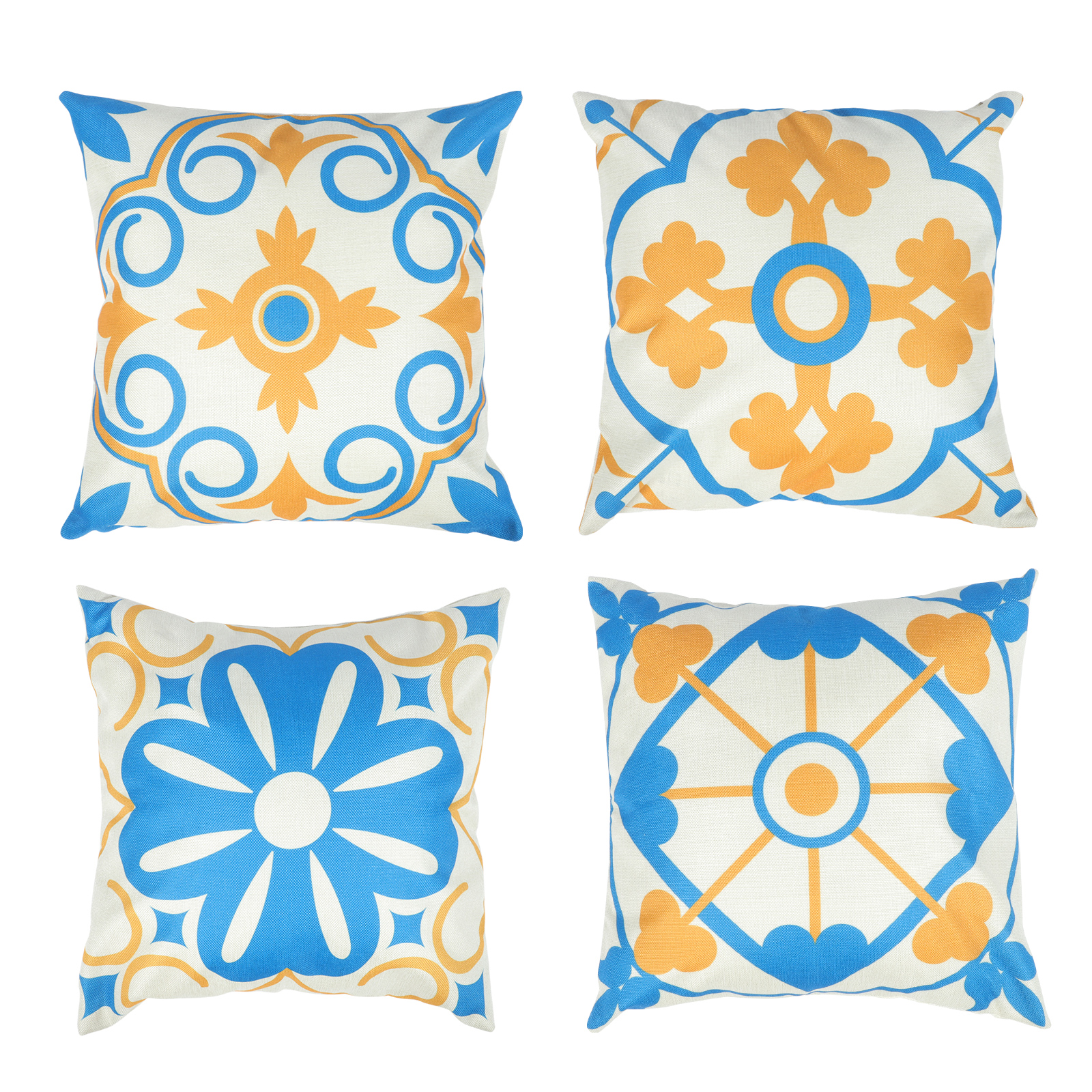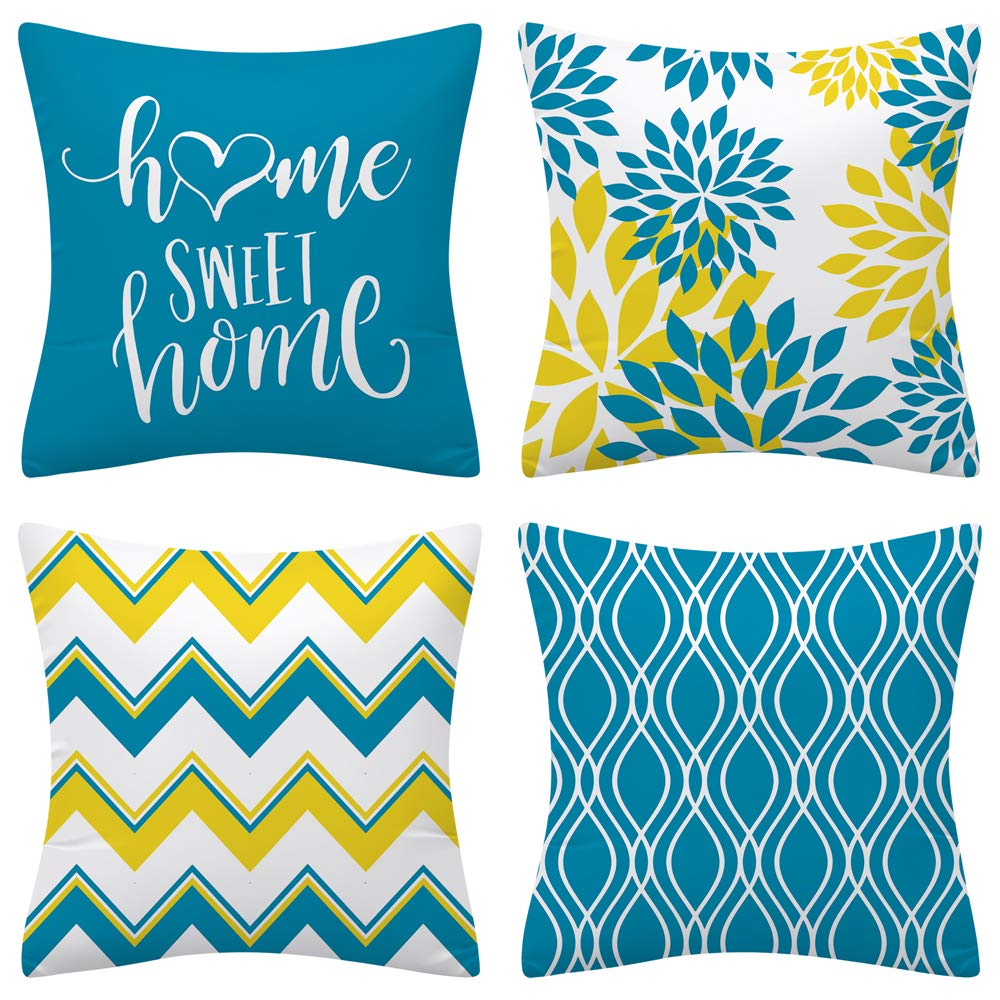 Throw Pillow Covers 18 x 18 Set of 4, Geometry Outdoor Square Pillow Cushion Cases, Modern Decorative Pillow Covers for Couch Sofa Bedroom Car, Yellow