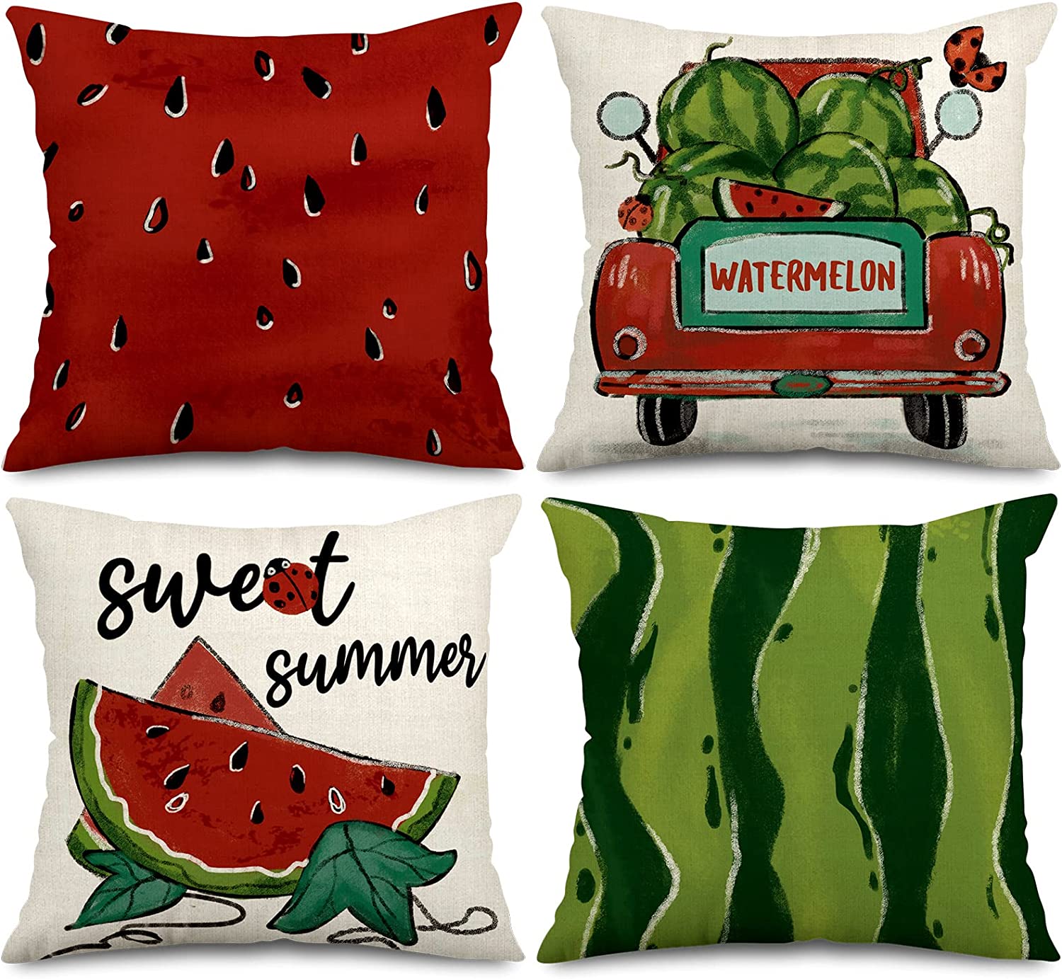 Watermelon Throw Pillow Covers Sweet Summer Beach Cushion Case Farmhouse Decorative Pillow Case for Outdoor Activity Sofa Home Couch Office, 18 x 18 Inch