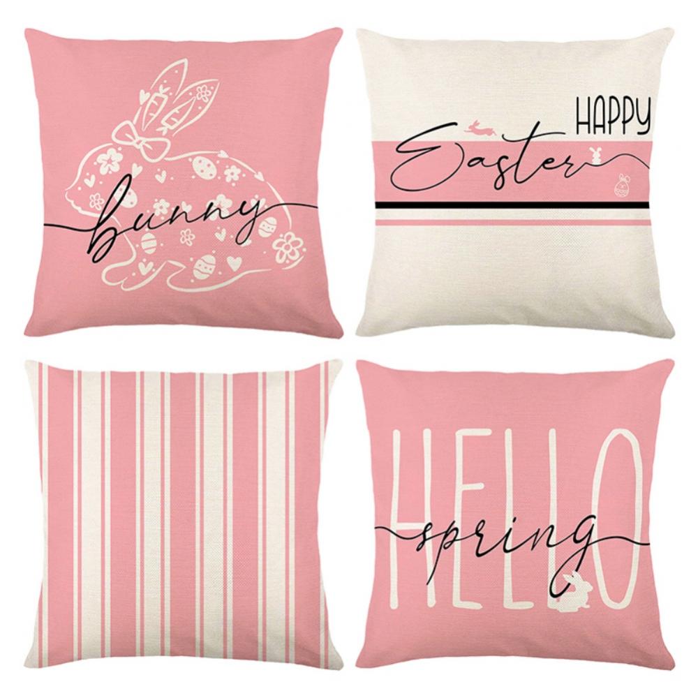 Easter Pillow Covers 18x18 inch Set of 4, Happy Easter Throw Pillow Covers Rabbit Throw Pillow Covers Bunny Eggs Pillow Covers Farmhouse Decorative Pillow Covers for Sofa Couch Bedroom