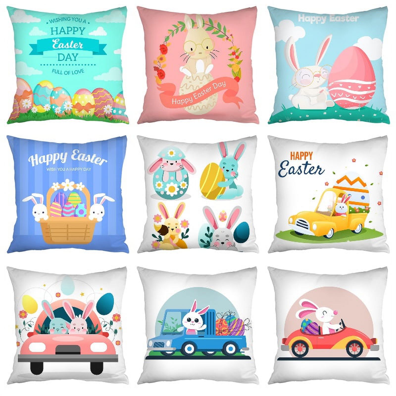 Dicasser Easter Throw Pillow Covers 18x18 Set of 9 Easter Decor Hunt Bunny Eggs Spring Pillowcase Decor Happy Easter for Lucky Gift Farmhouse Outdoor Sofa Couch Home Decor