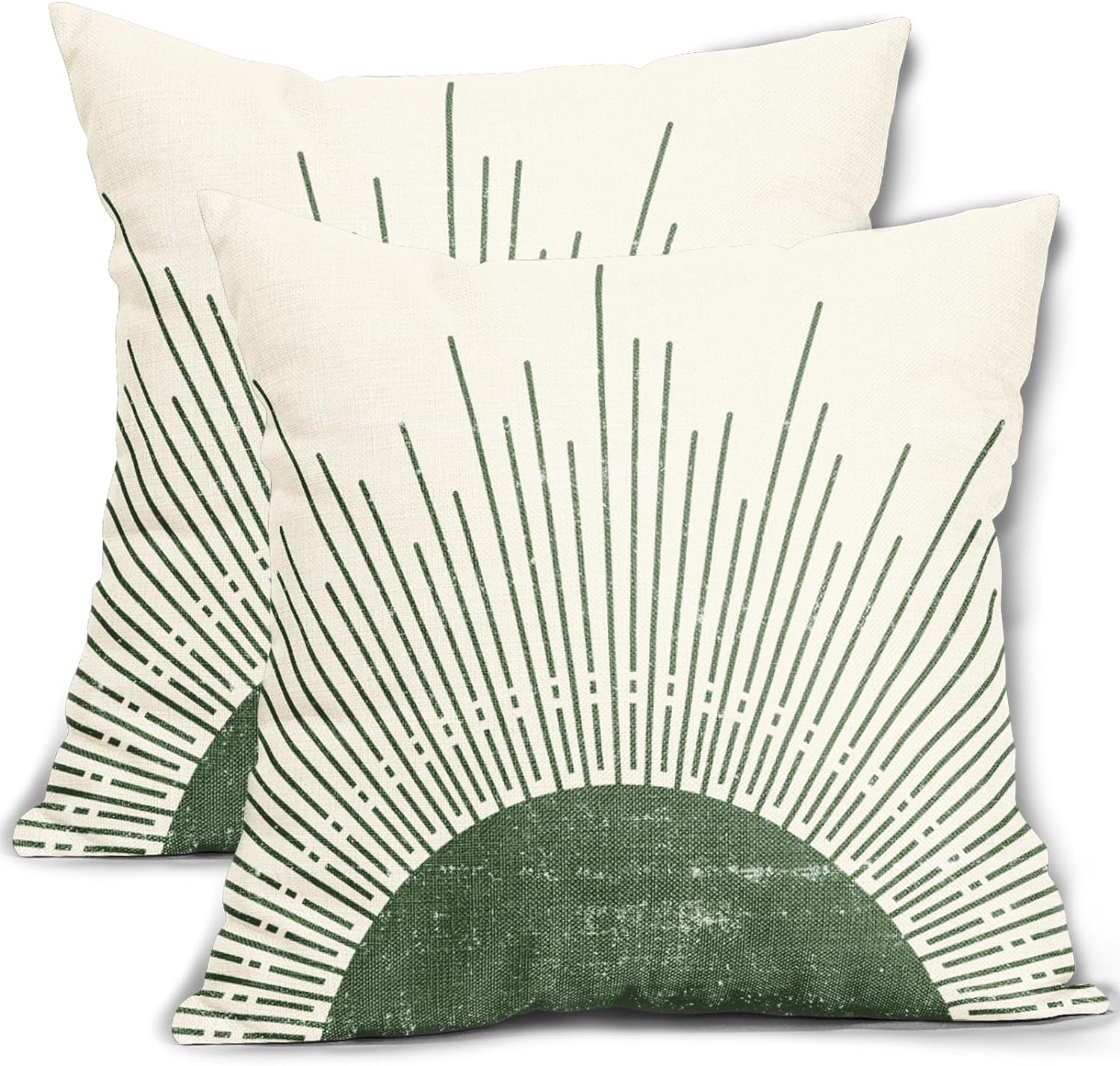 Green Boho Sun Pillow Covers 18x18 Set of 2 Bohemian Design Sunrise Sunset Abstract Sunshine Print Decorative Throw Pillows Outdoor Pillowcase Linen Farmhouse Cushion Case Decor for Couch Sofa Bed