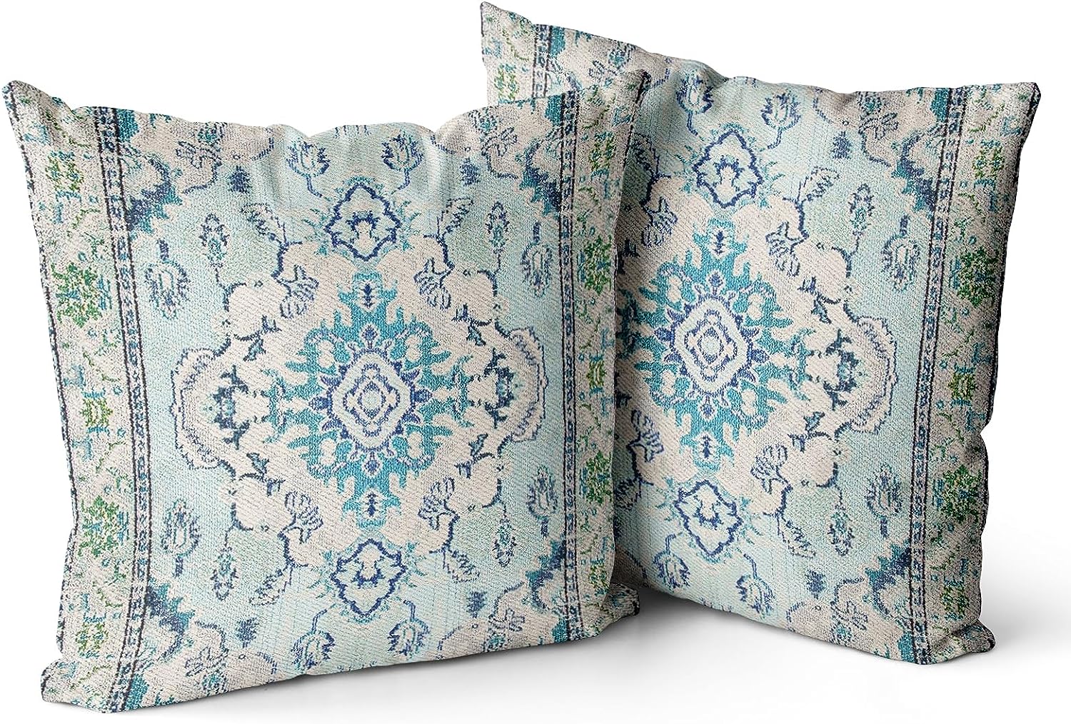 Boho Throw Pillow Covers 18x18 inch Set of 2 Teal Blue Monaco Rug Persian Carpet Double Sided Pattern Cotton Soft Pillow Case Cushion Cover Pillowcase for Couch Sofa Bed Decorative