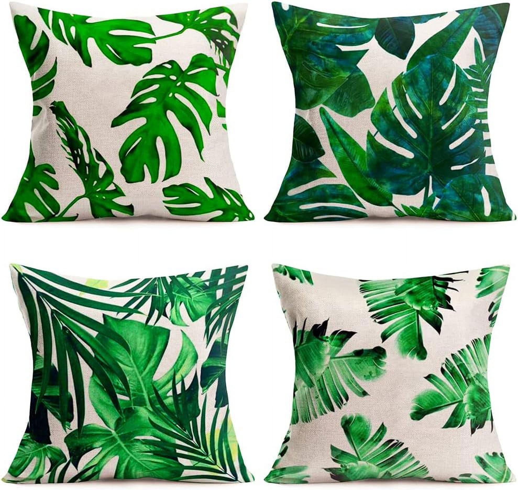 4Sets Tropical Leaves Throw Pillow Covers Banana Leaf Green Palm Leaf Decorative Pillow Cases Cotton Linen Outdoor Cushion Covers for Sofa Couch Garden Home Decor (22x22Inch TL- Leaf)