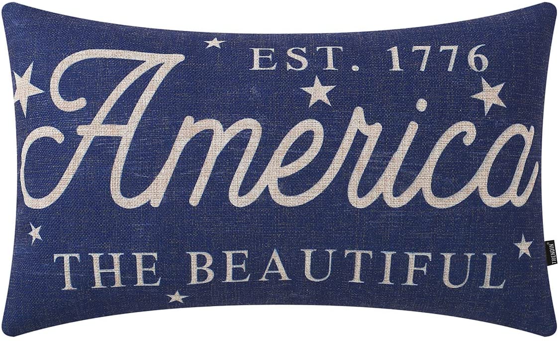 TRENDIN 4th of July Pillow Cover 12x20 inches America The Beautiful Est. 1776 Patriotic Sign Decoration Rustic Home Decor Linen Rectangular Cushion Case for Sofa Couch, Blue PL861TR