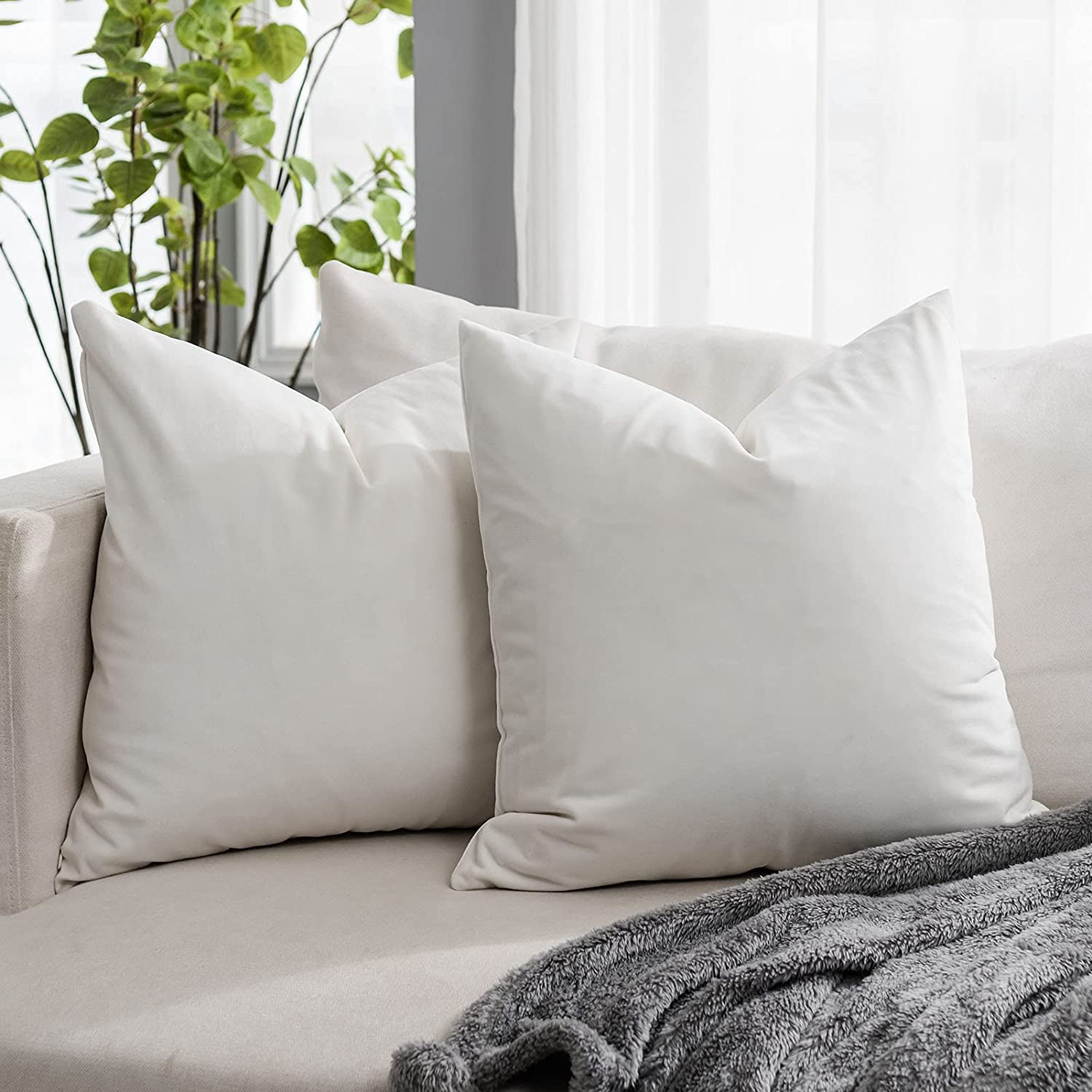 GUTALOR Light Blue Velvet Decorative Lumbar Throw Pillow Covers 12x20,Pack of 2 Luxury Solid Soft Cushion Case for Sofa Couch Bed