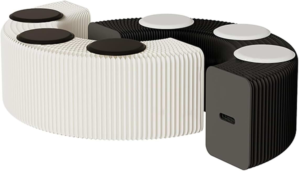 Folding Sofa Side Stools, Extendable Folding Benches, Exhibition Product Display Table, Furniture Low Stools Shoe Changing Stools, Black and White Splice Accordion Paper Stool