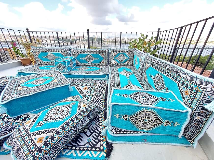 8 Thickness Mauritania Floor Cushions, Turkuoise Floor Couches, Arabic Majlis, Arabic Floor Sofa Seating, Pallet Sofa, Sectional Sofa, Bench Cushions (Sofa Full Set)