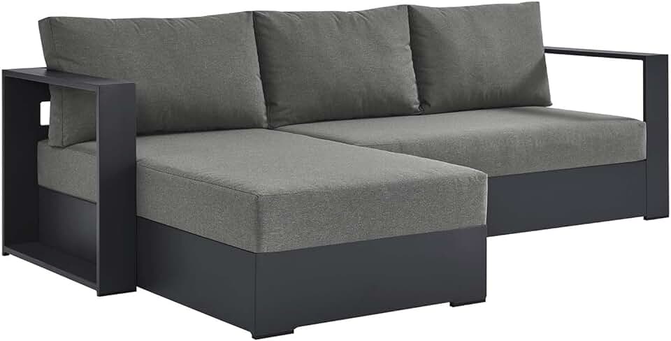 Modway Tahoe Modular Aluminum Outdoor Patio Furniture Gray Charcoal, Sectional Sofa Weather-Resistant Cushions, Ideal for Deck, Backyard, Poolside, 2-Piece Left-Facing Chaise Set