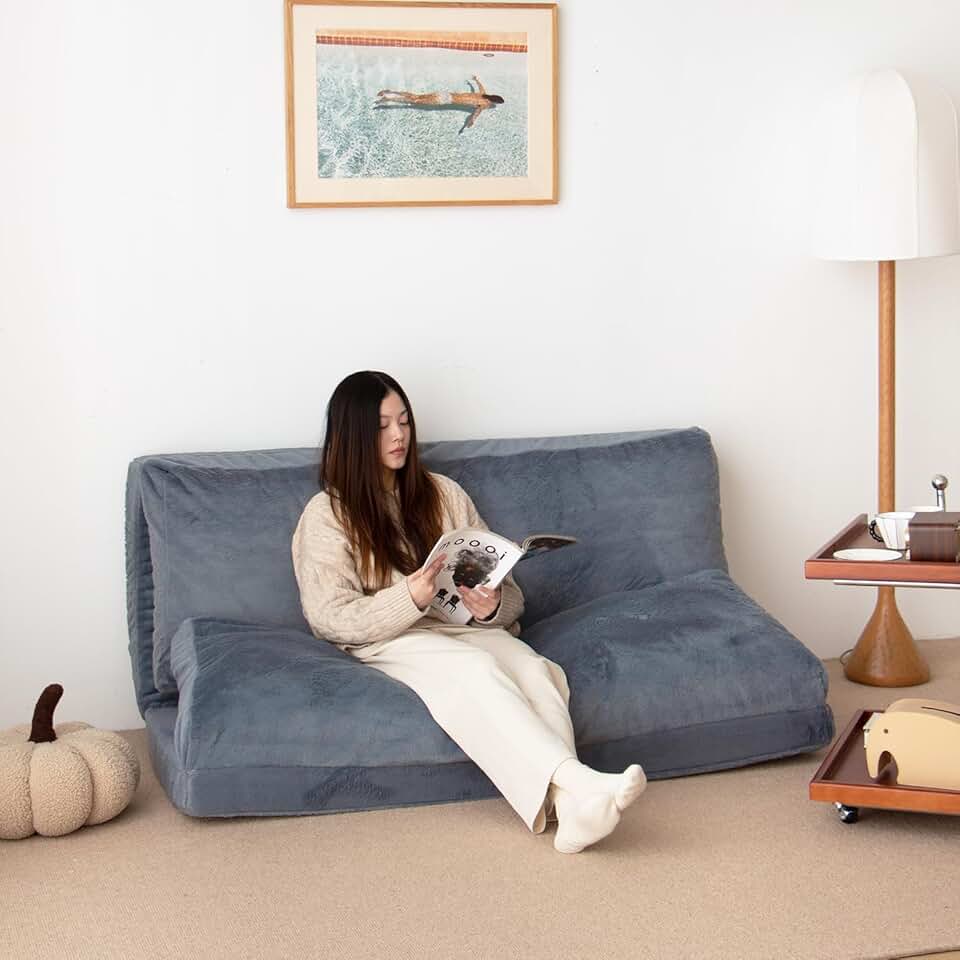 N&V Folding Matress Sofa Bean Bag Bed, Foam Filling Folding Matress Sofa, Includes Removable and Machine Washable Cover, Soft Premium Faux Fur (Large, Blue)