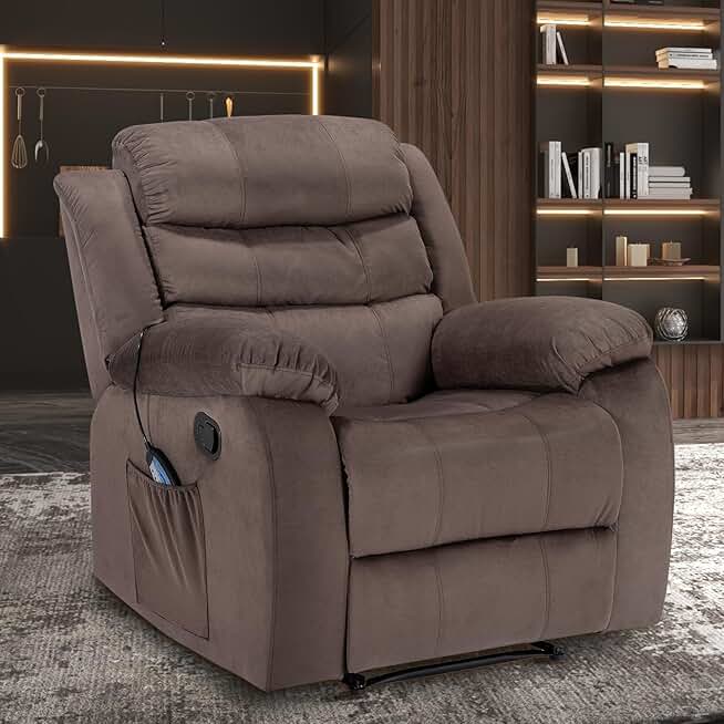 Recliner Chairs for Adults Manual Reclining Sofa Chair Oversized Recliner Chair for Living Room Comfy Home Theater Seating (Brown, Massage Heating, Velvet)