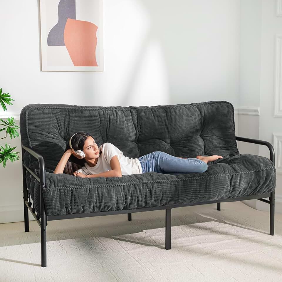 MAXYOYO 8" Futon Mattress Queen Size, Ultra Thick Futons Sofa Couch Bed Tufted Sleeper Sofa Bed, Corded Fabric Floor Mattress for Adults, Shredded Foam Filling (Frame Not Included), Dark Grey