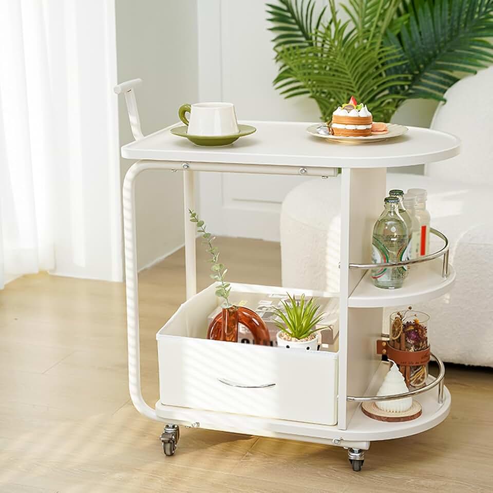 Mobile Sofa Side Table| Mobile Bar and Coffee Serving Cart| Sofa Side End Tables| Mobile Snack Table with 2 Back Storage Compartments| for Living Room Bedroom