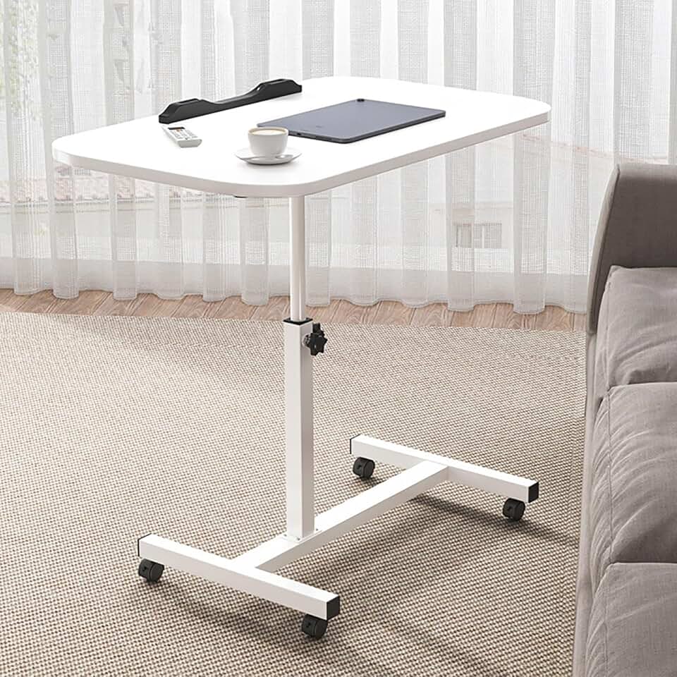 Small Standing Desk, Mobile Desk Adjustable Height on Lockable Wheels, Rolling Laptop Desk, Adjustable Height Desk C Table for Sofa, 90° Tiltable Overbed Bedside Table (Color : White, Size : 60cm/