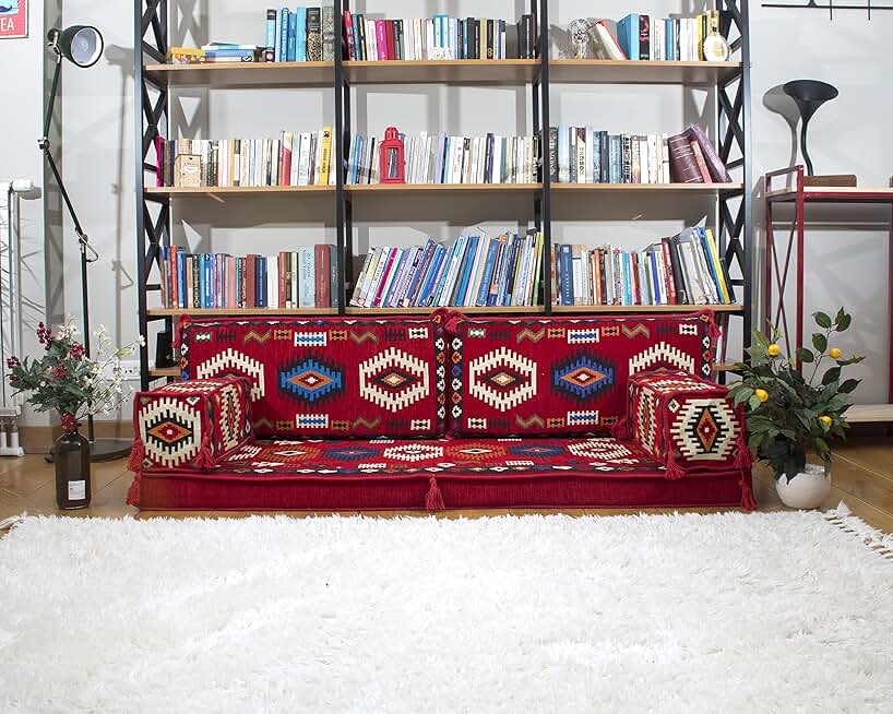 Red Reading Sofa, Backrest Pillows, Arabic Majlis, Turkish Floor Cushion, Ethnic Sofa, Arabic Sofa Seating Set, Sofa Covers