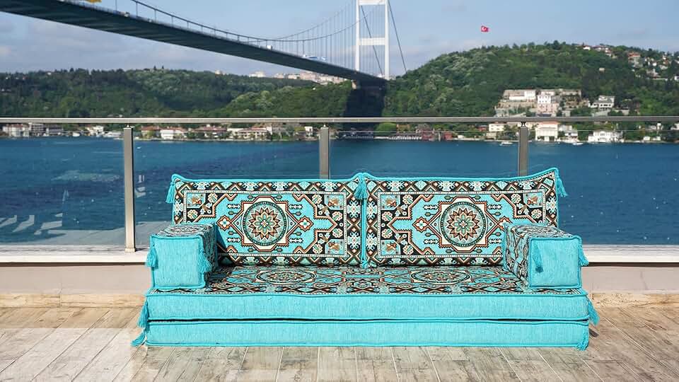 Turquoise Reading Sofa, Moroccan Home Decor Couches, Arabic Majlis, Turkish Floor Sofas, Ethnic Sofa, Arabic Sofa Seating Set, Sofa Covers
