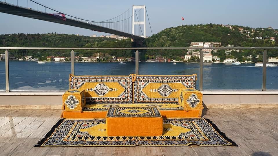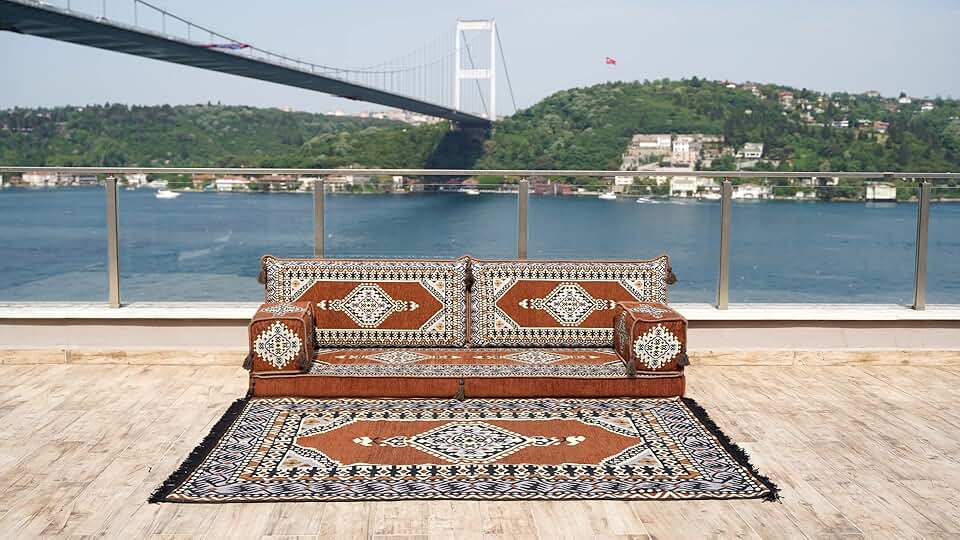 Living Room Sofas, Sofa Slipcovers, Patio Sofa, Moroccan Sofa, Sectional Sofa with Ottoman, Turkish Floor Sofa (Sofa + Rug, 4'' Thickness (10 cm))
