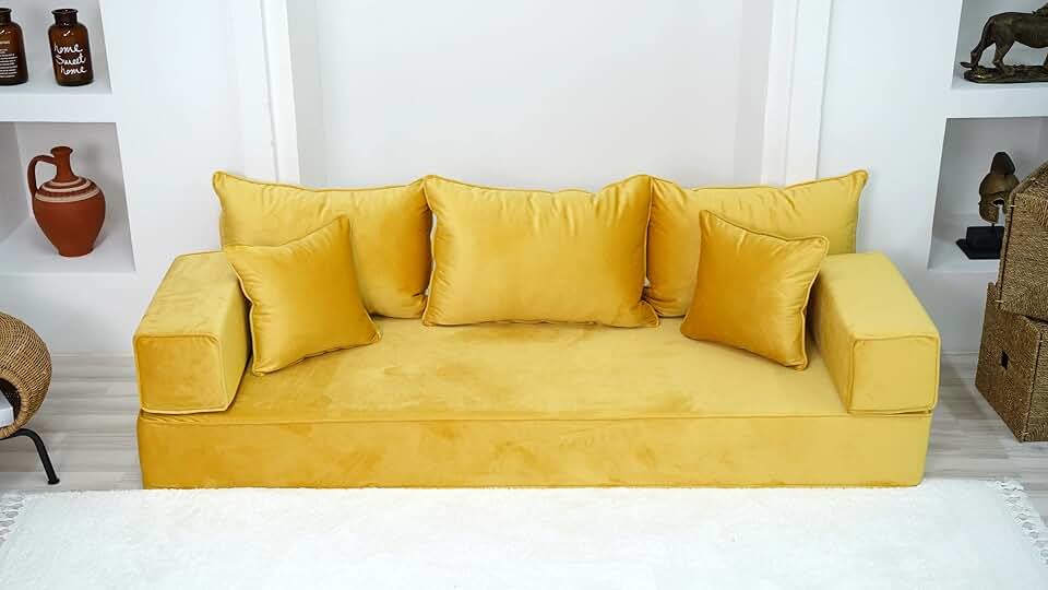 Yellow Color Floor Sofa, Meditation Yoga Mats, Healing Room Decors, Modern Livingroom Cushions, Toddler Floor Bed, Loveseats, Futon Sofa Bed, Sofa Covers (Sofa Only)