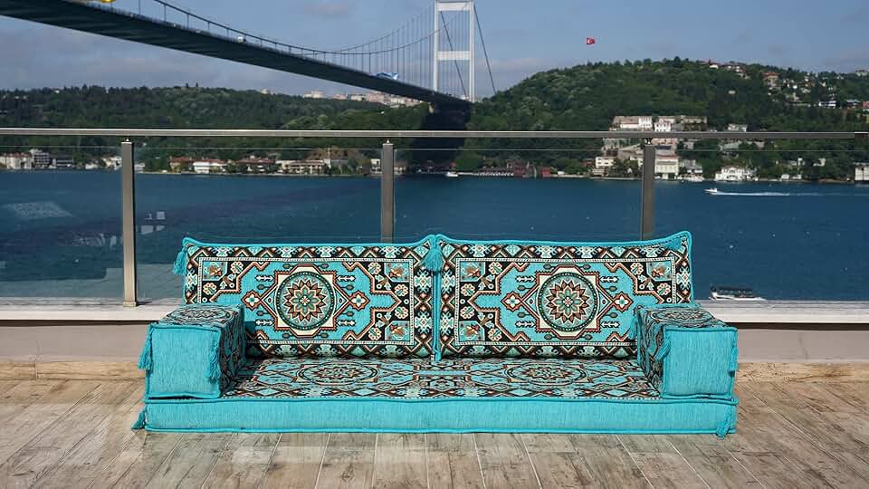 Turquoise Reading Sofa, Moroccan Home Decor Couches, Arabic Majlis, Turkish Floor Sofas, Ethnic Sofa, Arabic Sofa Seating Set, Sofa Covers (4'' Thickness Sofa)