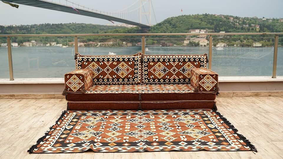 Oriental Arabic Majlis, Traditional Cushion, Sofa Covers, Ethnic Floor Cushion, Sofa Slipcovers, Futon Sofa Bed (Sofa + Rug, 4'' Thickness (10 cm))