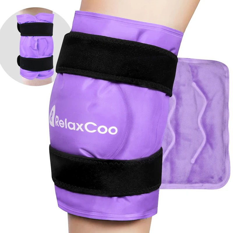 RelaxCoo XXL Knee Ice Pack Wrap Around Entire Knee After Surgery, Reusable Gel Ice Pack for Knee Injuries, Large Ice Pack for Pain Relief, Swelling, Knee Surgery, Sports Injuries, 1 Pack Purple