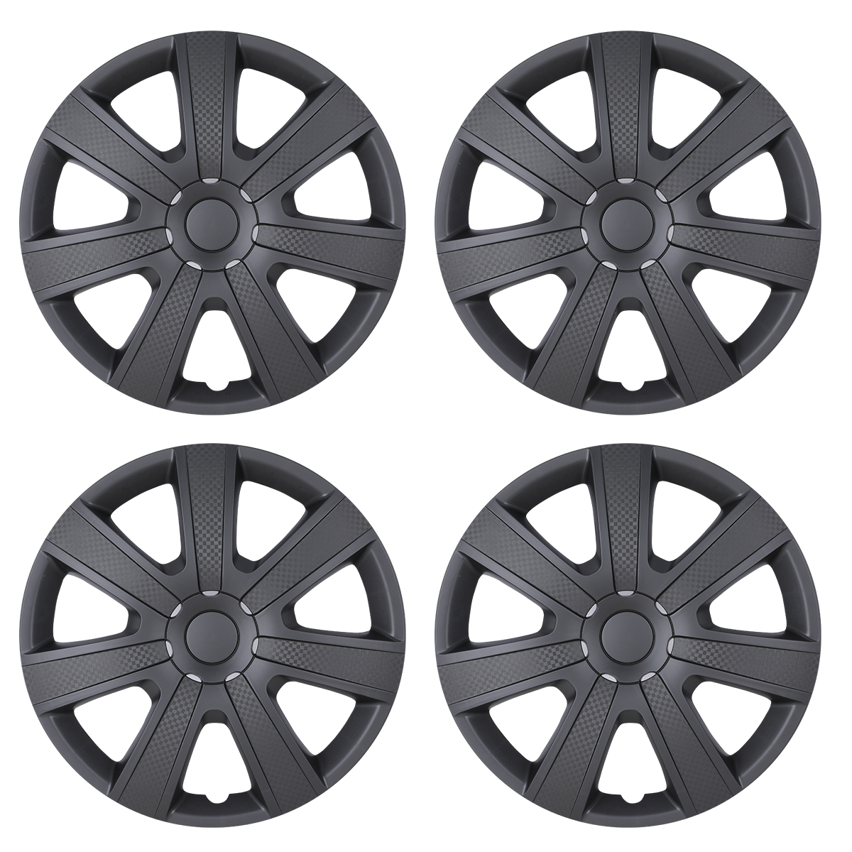 15" Set Of 4 BLACK MATTE Wheel Covers Snap On Hub Caps Fit R15 Tire + Steel Rim