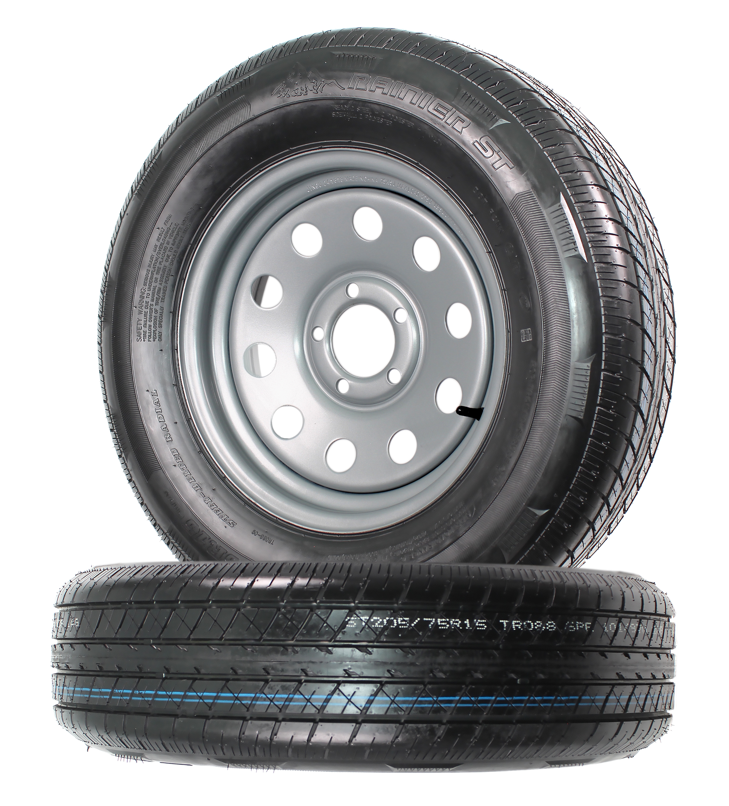 2-Pk Radial Trailer Tire On Rim ST205/75R15 15 LRC 5 Lug Silver Modular Wheel