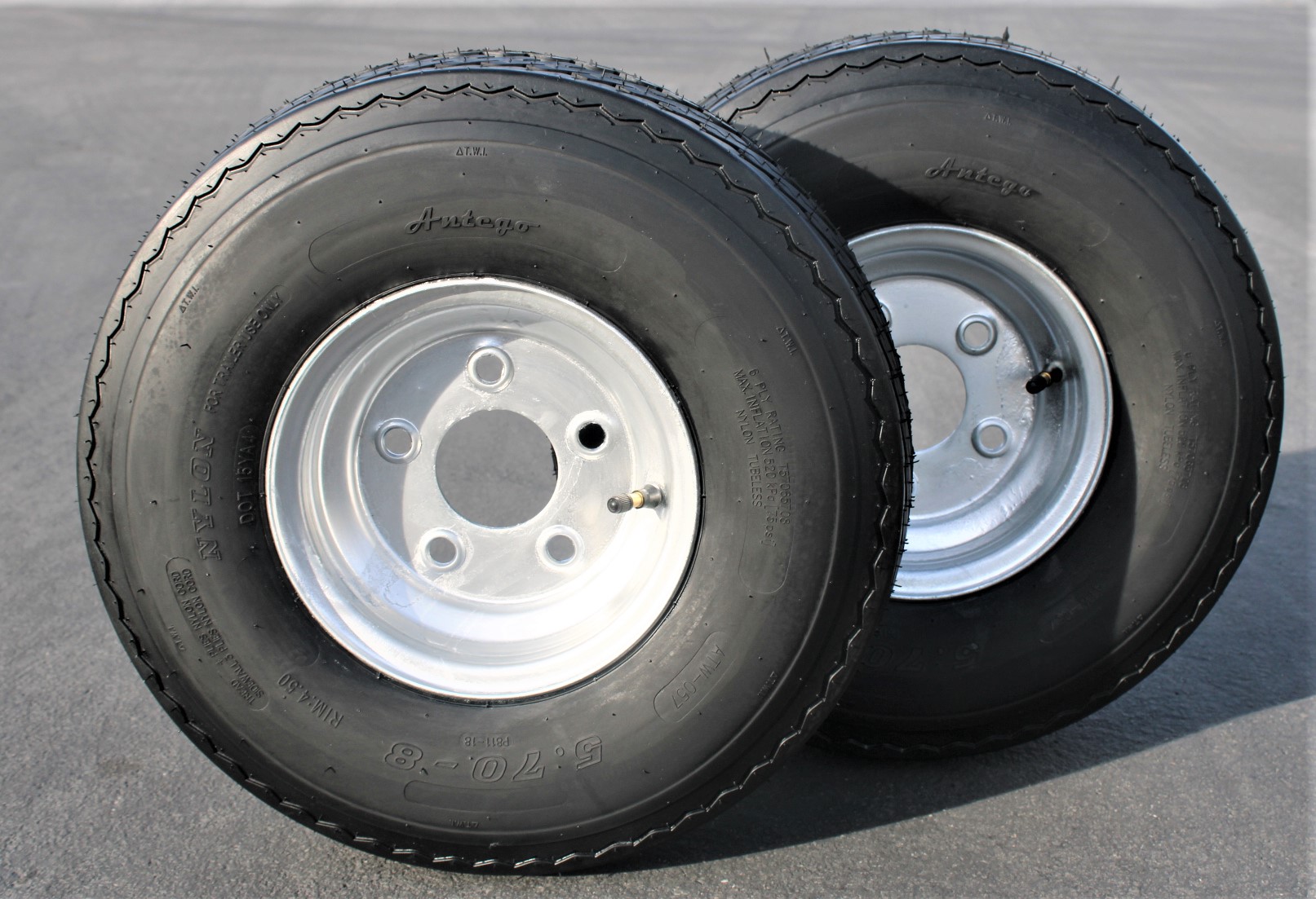 Antego Tire and Wheel 2-Pack Antego Trailer Tire On Rim 570-8 5.70-8 Load C 5 Lug Galvanized Wheel