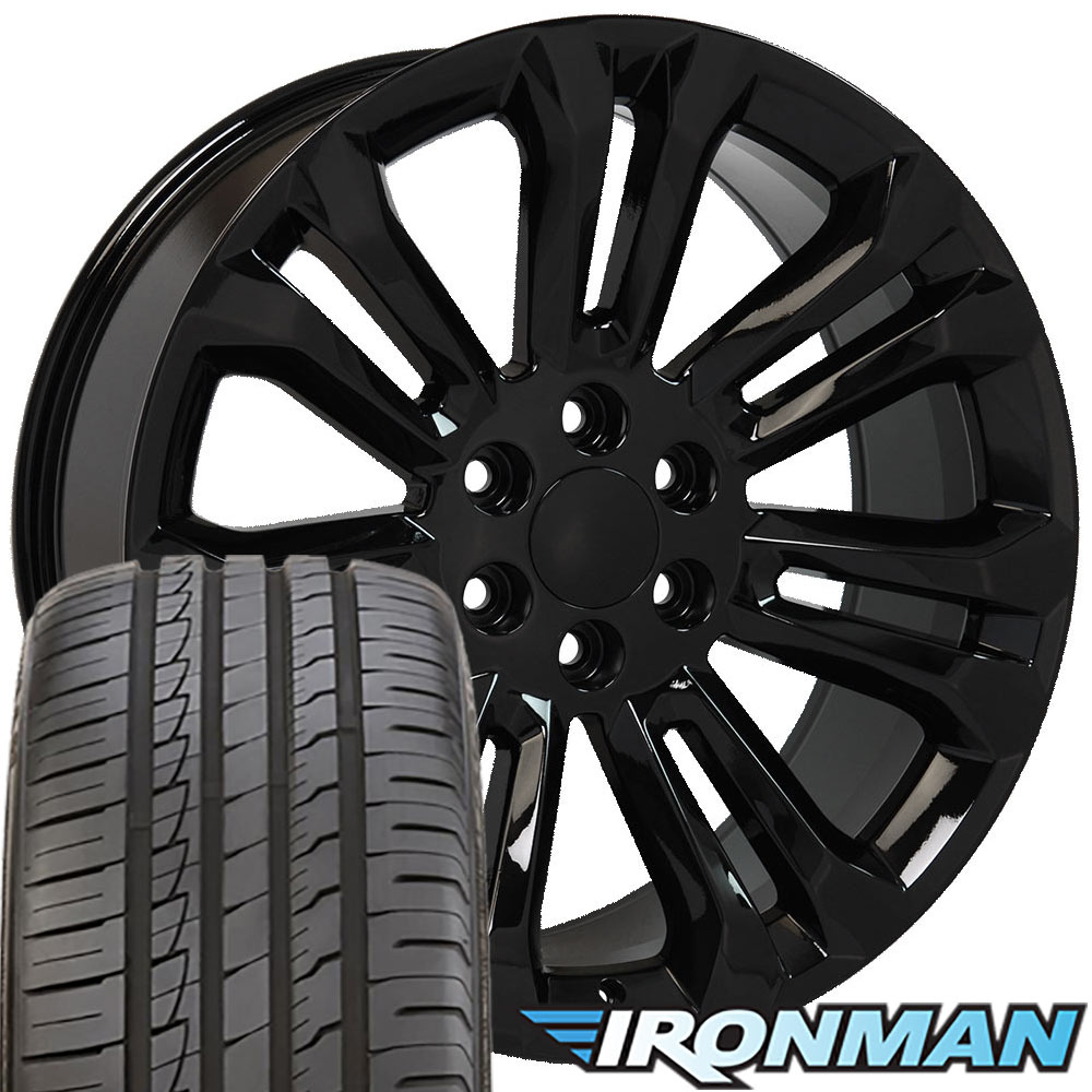22x9 Wheels & Tires Fit GM Trucks - Chevy Silverado Style Black Rims with Ironman Tires, Hollander 5666 - SET
