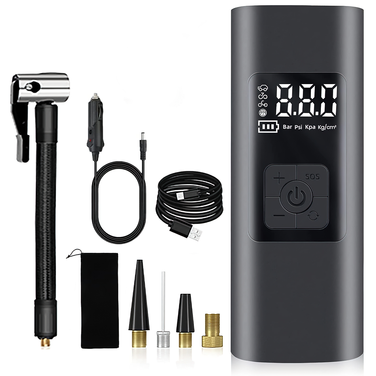 Tire Inflator, Portable 150 PSI Air Compressor Bicycle Pump with Digital Pressure Gauge, Cordless Rechargeable Tire Pump with LED Light, Mini Electric Air Pump for Car Bike Motorcycle Ball