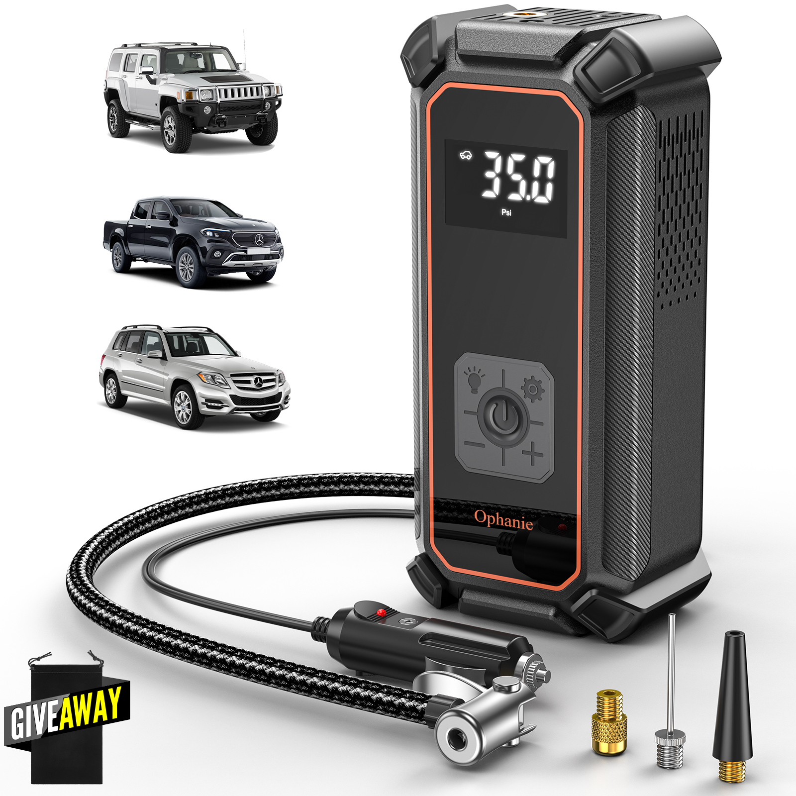 Ophanie DC 12V Tire Inflator - 120 Psi Digital Pressure Gauge,Air Compressor for Car Tires with Automatic Shutoff ,Emergency LED Light,Compact Automotive Pump,Black