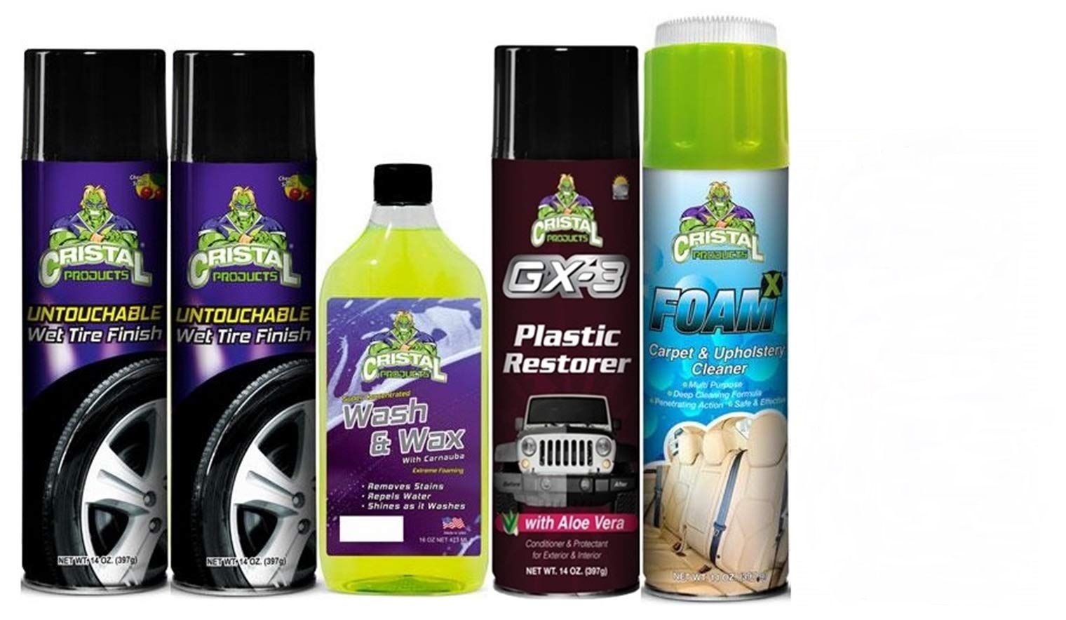Cristal Products Untouchable Wet Tire Finish Bundle with GX-3 Plastic Restorer, Wash & Wax, and More (5 Items)