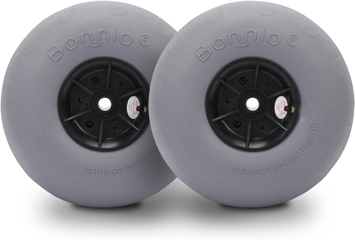 Bonnlo 12" Balloon Wheels Beach Cart Tires Replacement Big Sand Wheels for Beach Buggy, Kayak Trolley, Canoe Dolly, Rolling Walker, Garden Cart, Wheelchair, Sand Wagon w/Free Air Pump, 2-Pack