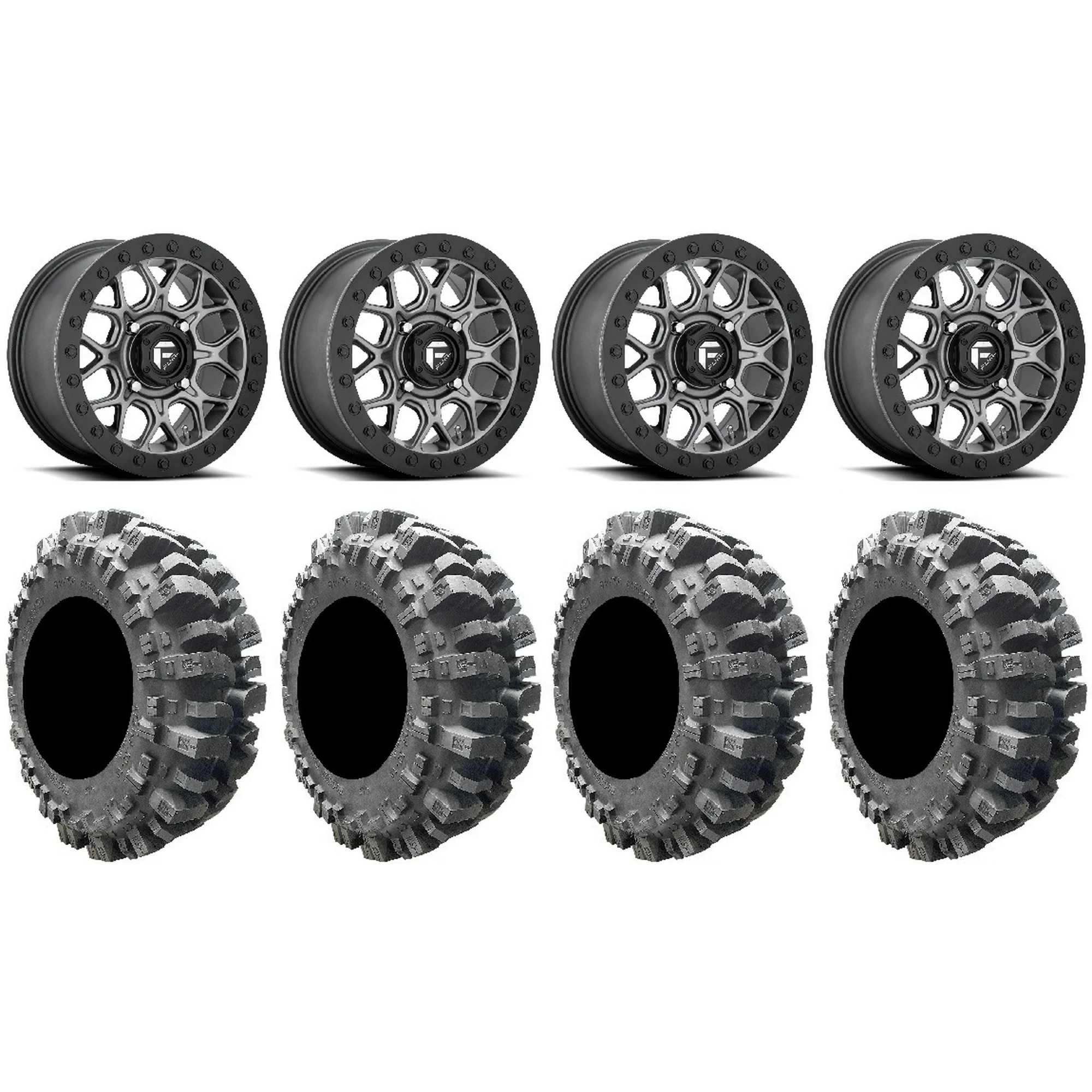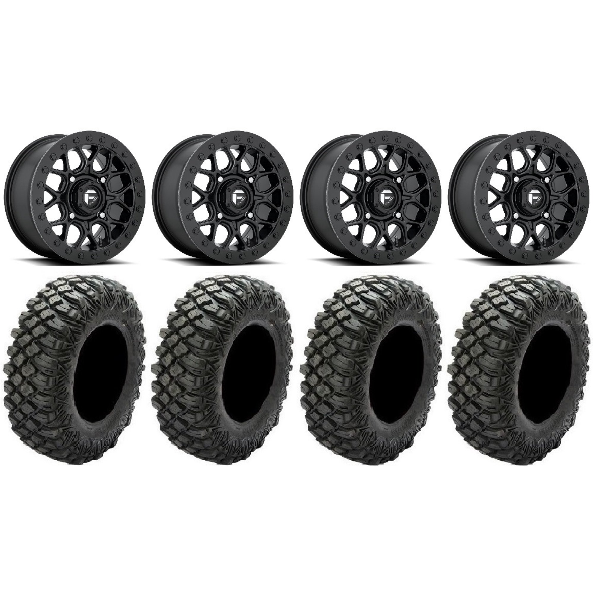 Fuel Triton Black 16" Wheels 33x9.5 BKT 171 Tires Can-Am Maverick X3 / Honda Pioneer 1000 / Talon