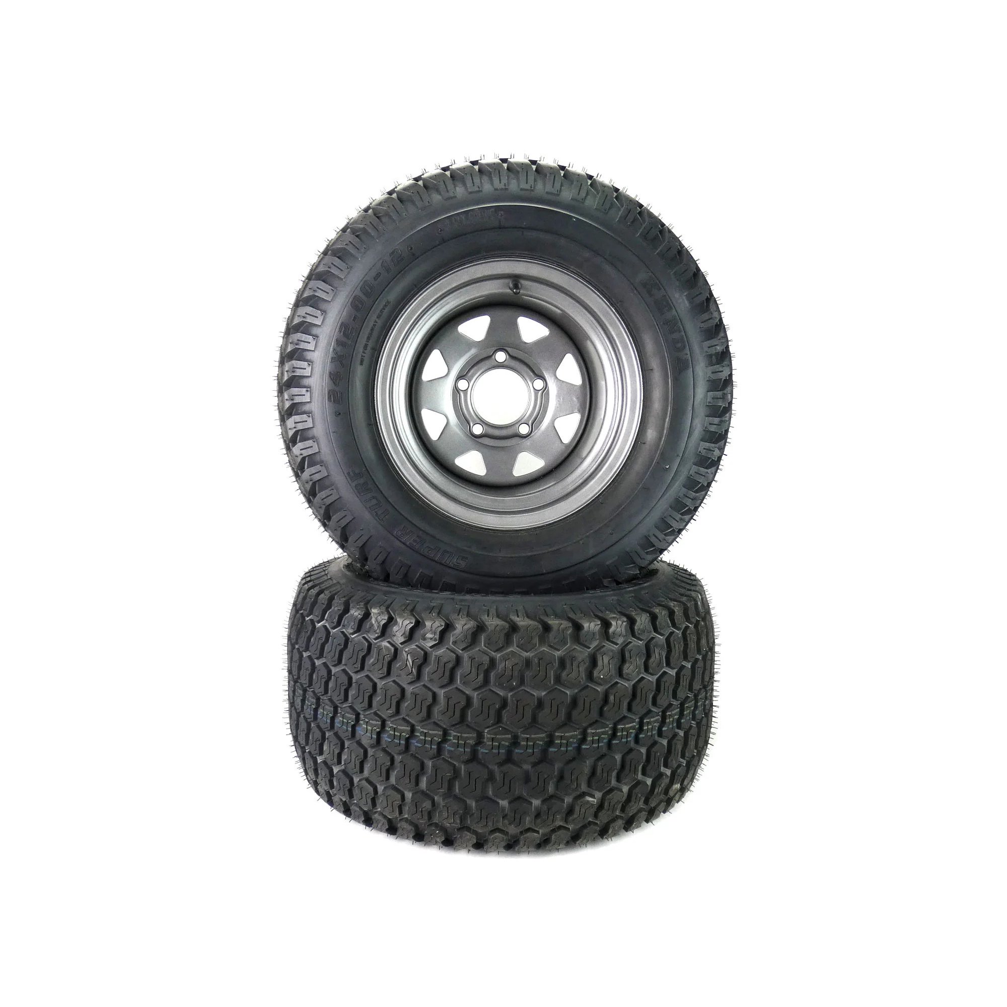 (2) Super Turf Tire Assemblies 24x12.00-12 Fits Hustler Super Z 60" Repl 606968