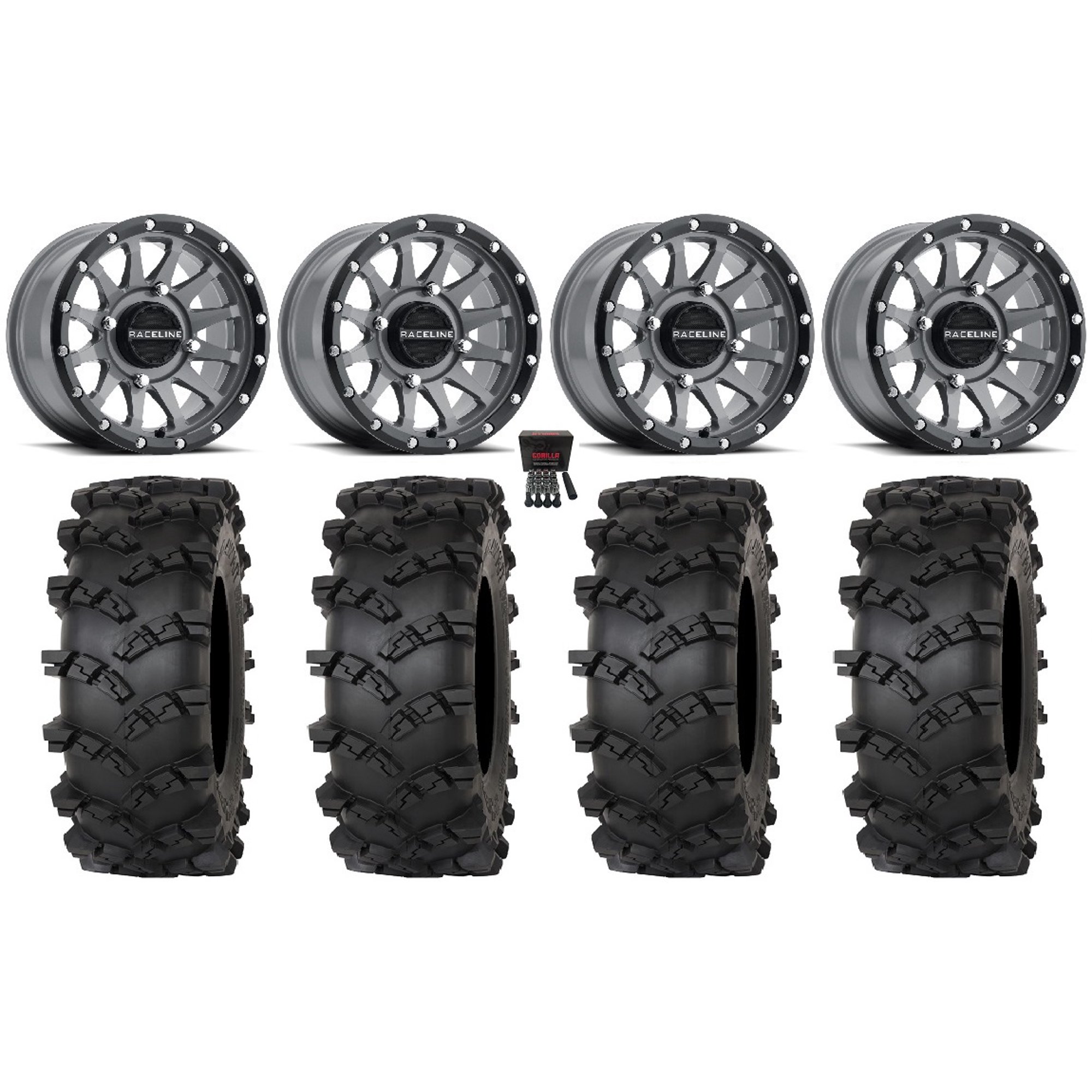 Raceline Trophy 14" Wheels Grey 30" Outlaw M/T Tires Can-Am Maverick X3 / Honda Pioneer 1000 / Talon
