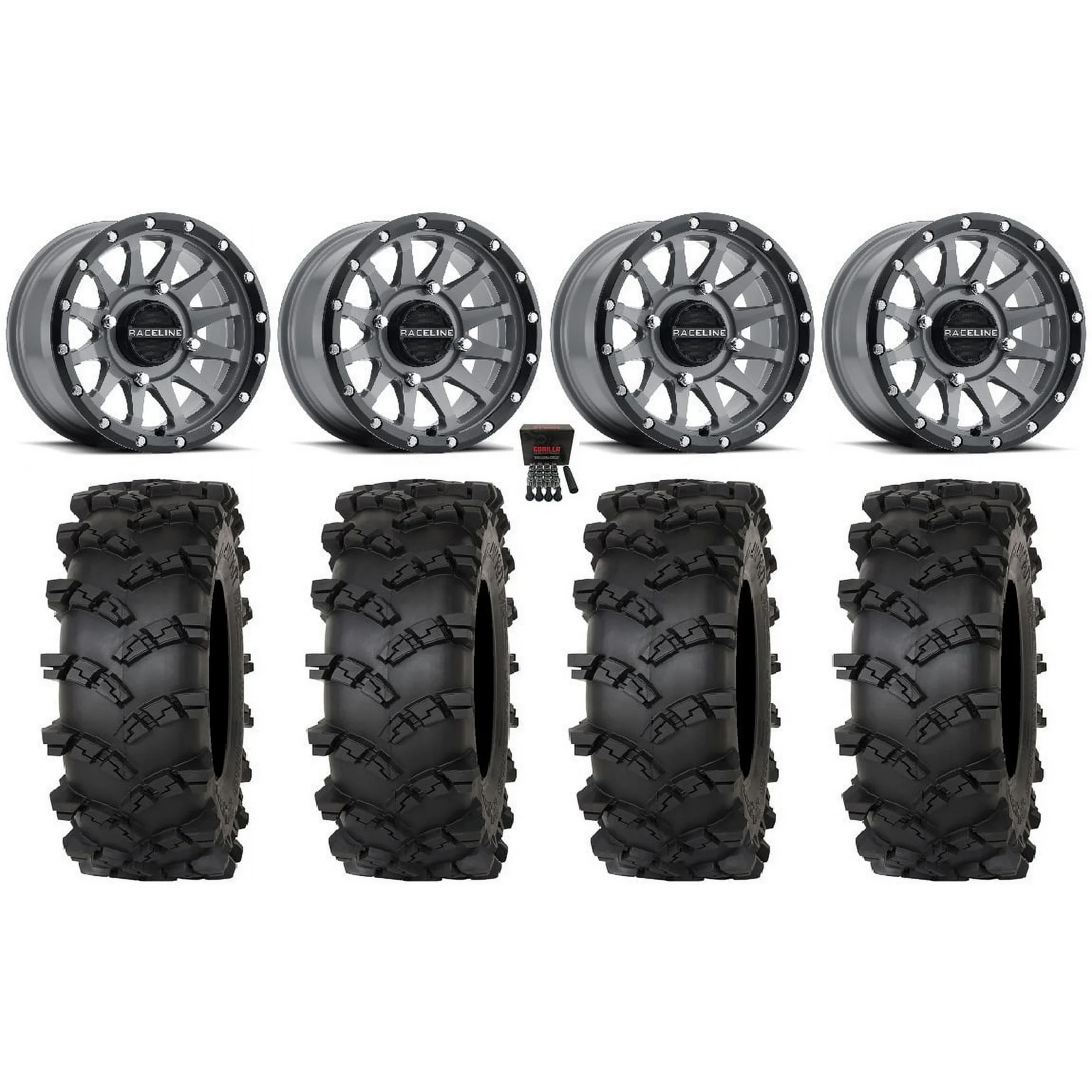 Raceline Trophy 15" Wheels Grey 32" Outlaw M/T Tires Sportsman RZR Ranger