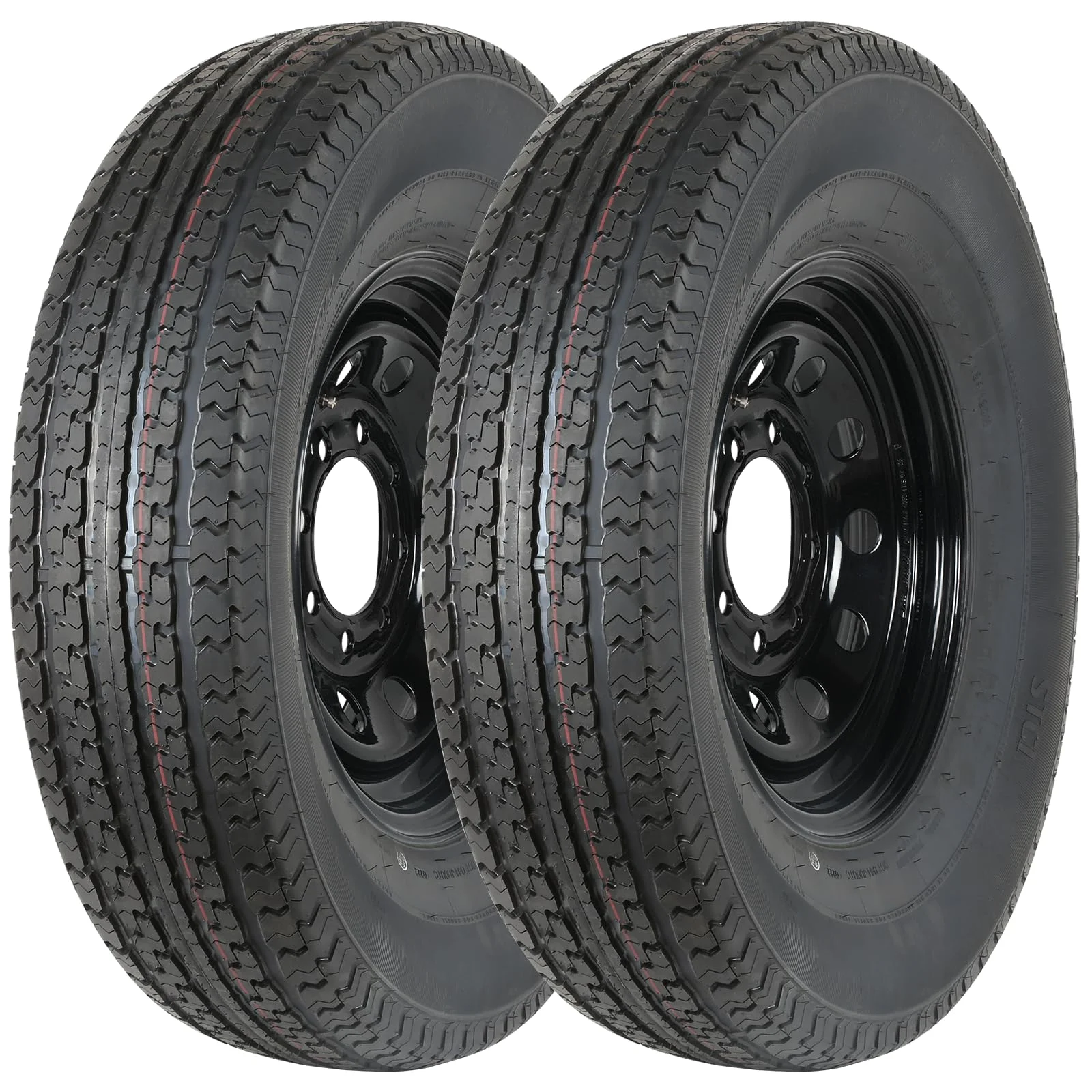 Durun 2 Pack ST225/75R15 Radial Tire with 15" Black Wheel - 6 on 5-1/2" - 10 PR Load Range E