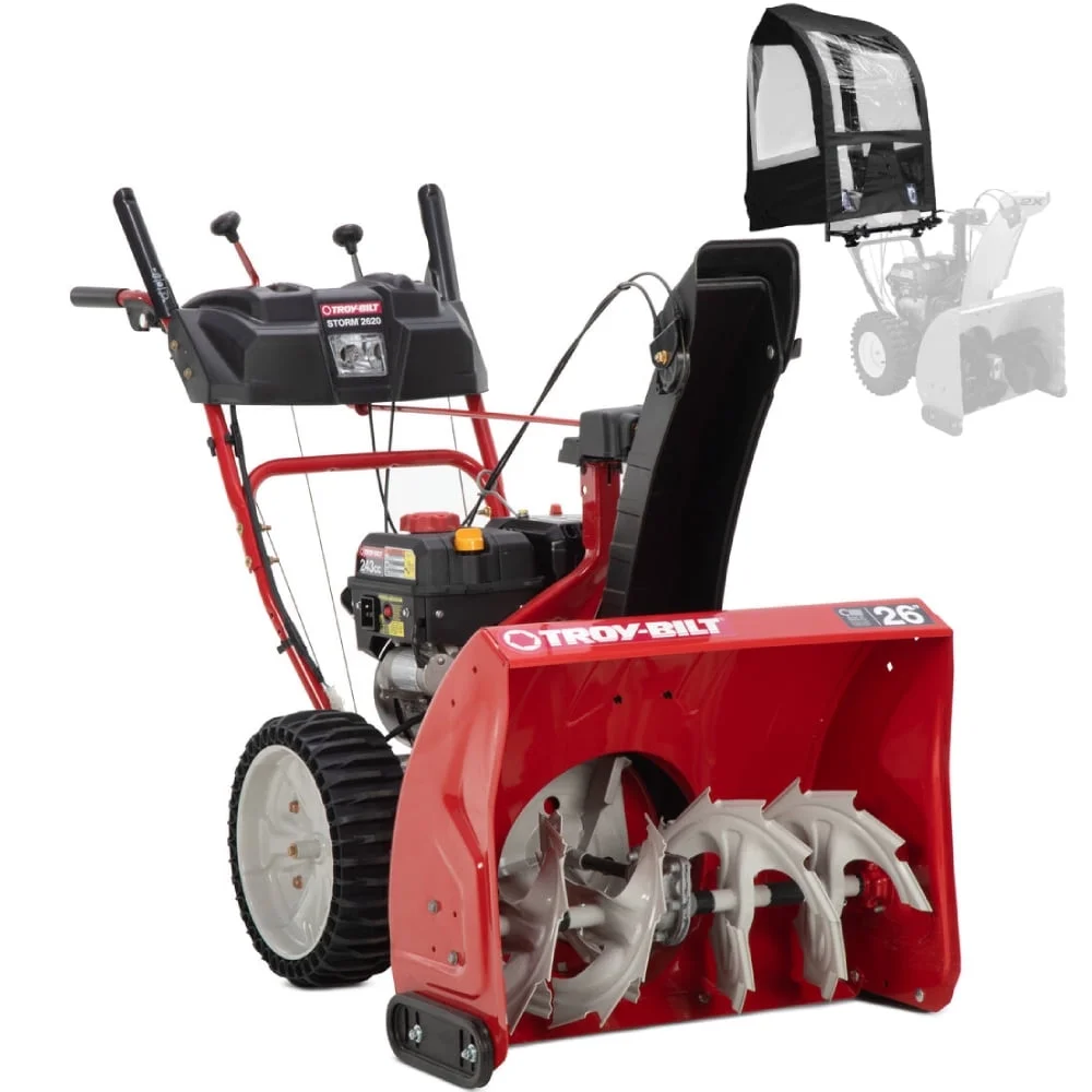 Restored Troy-Bilt Storm 2620 | 2-Stage Self Propelled Gas Snow Blower| 26 in. | 243 cc | Electric Start, Airless Tires & Includes Snow Cab (Refurbished)