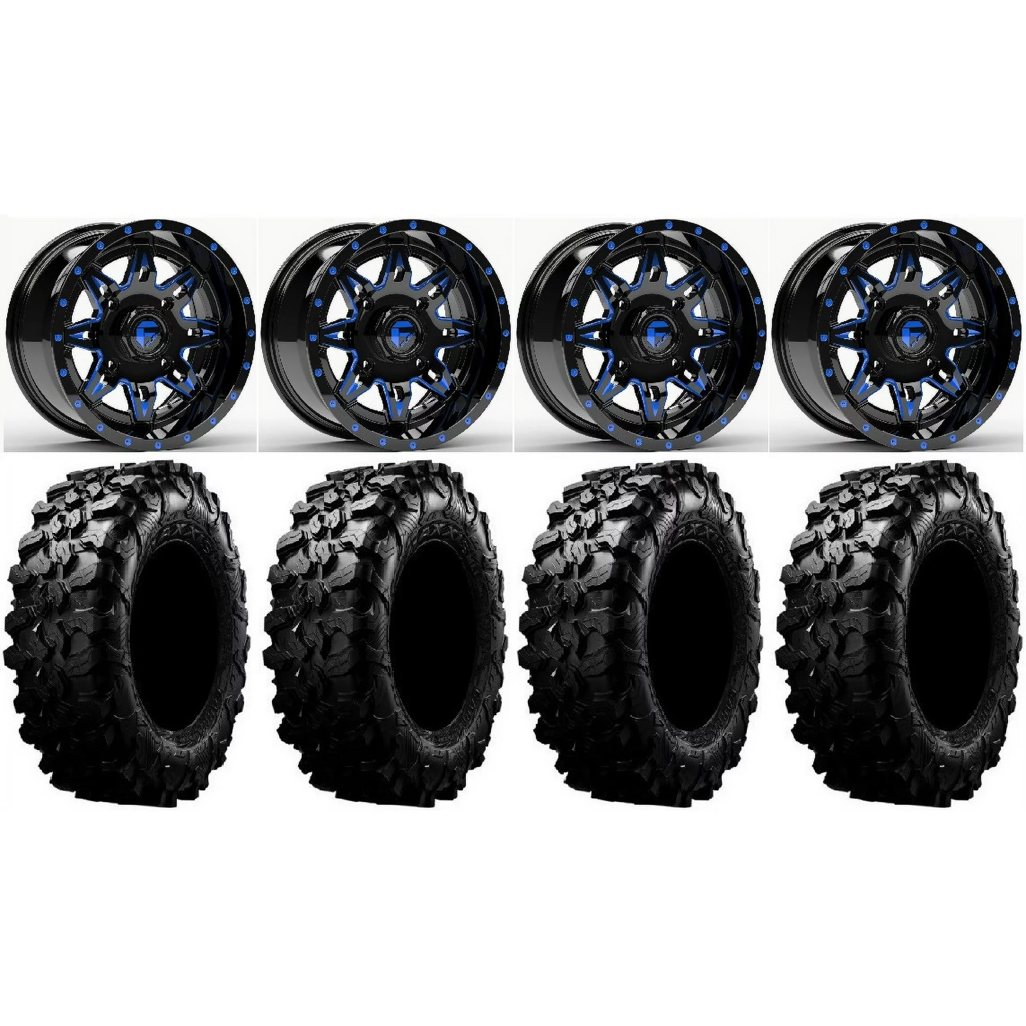 Fuel Lethal Blue 14" Wheels 30" Carnivore Tires Kawasaki Mule Pro FXT