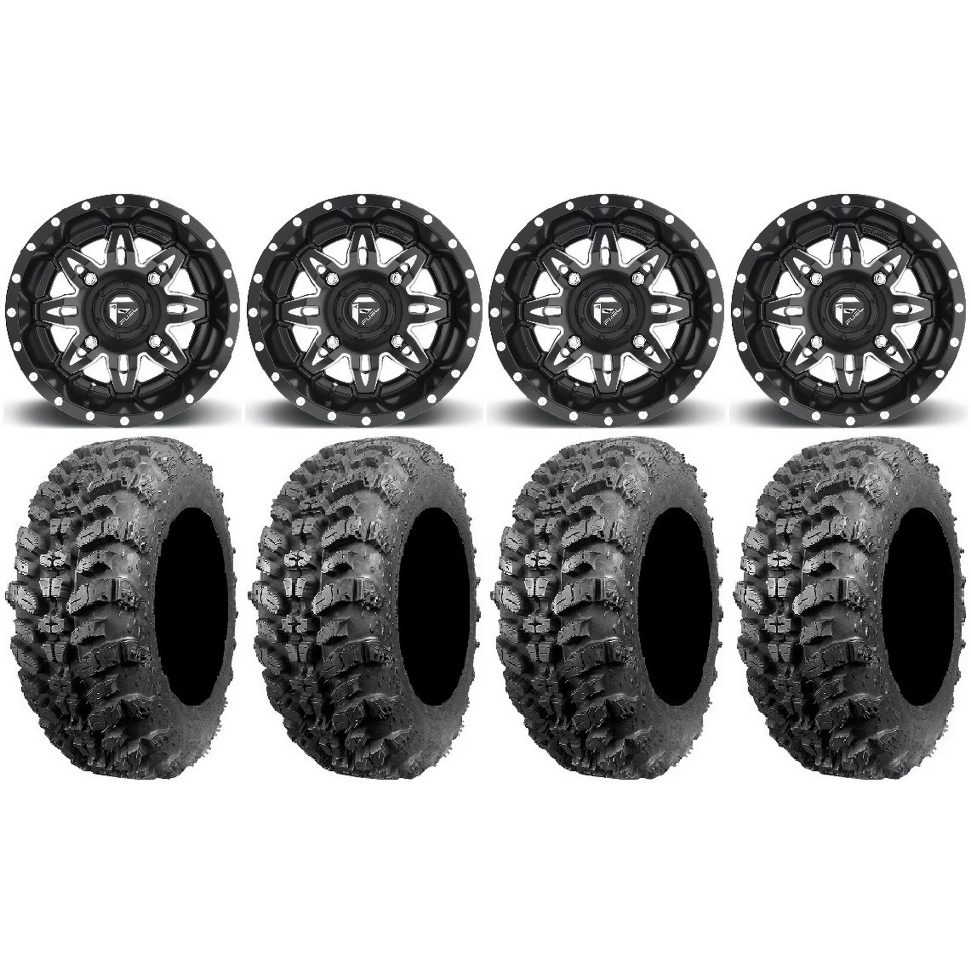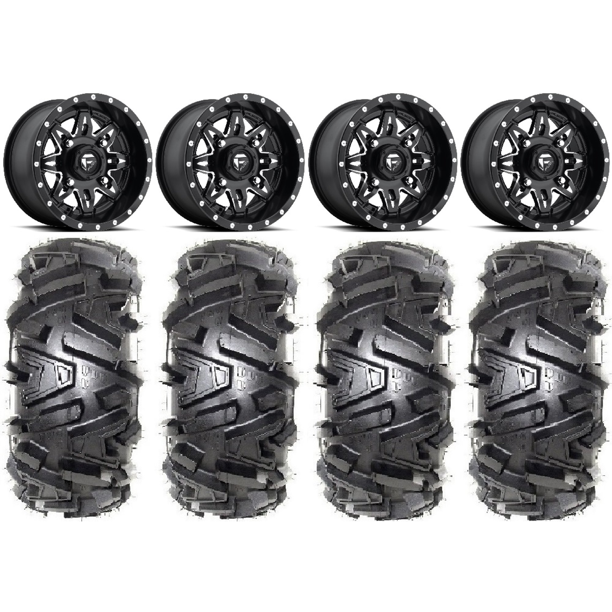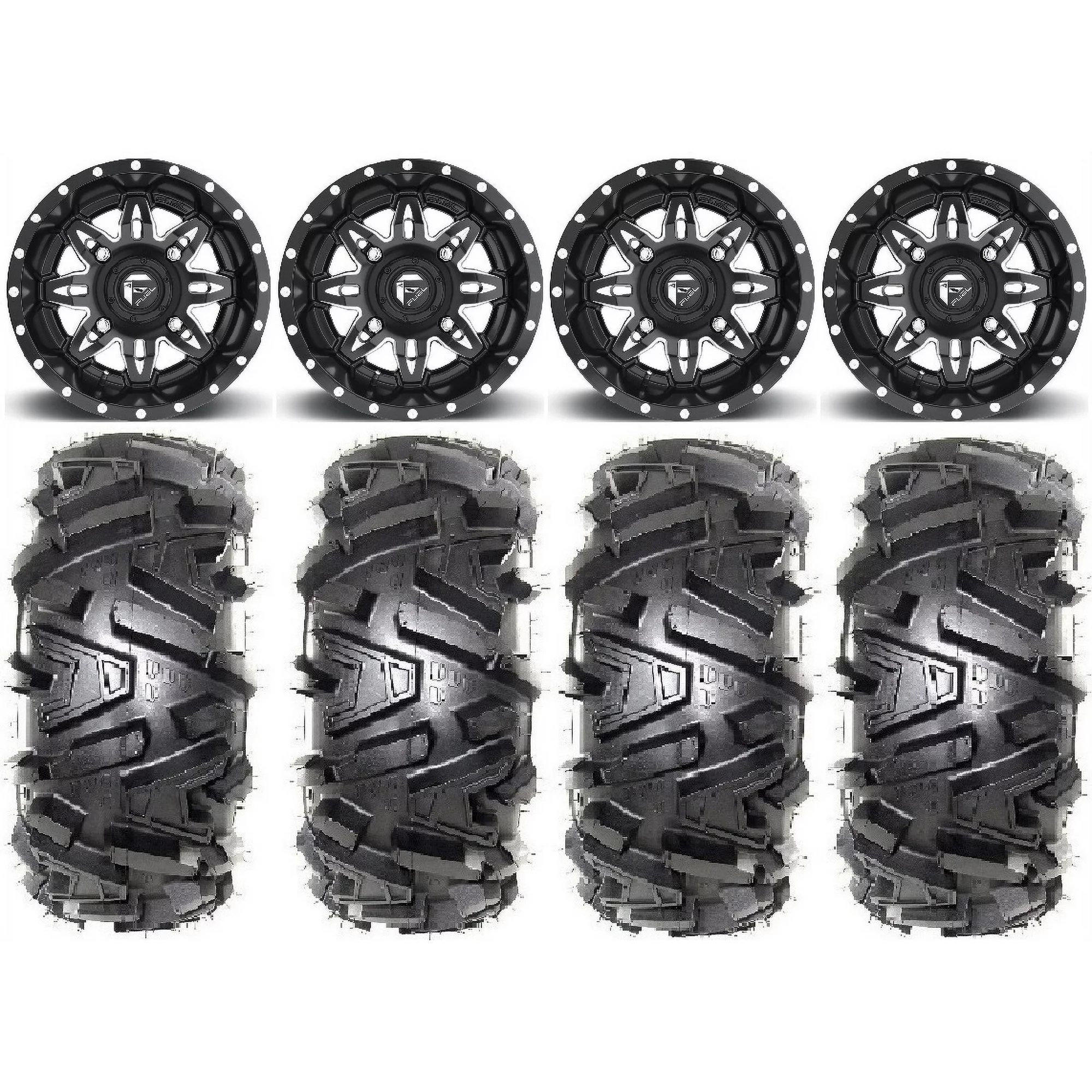 Fuel Lethal Black 15" Wheels 28" Moto MTC Tires Kawasaki Teryx Mule